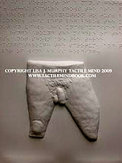 Книга, получившая название «Тактильные мысли», содержит 17 рисунков, на которых можно нащупать изображение «женщины в позе диско», «женщины с идеальной грудью» и прочие приятные пальцам части тела.