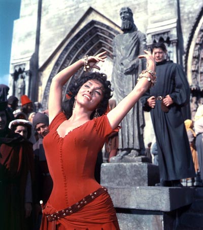 В 1953 году Лоллобриджиду пригласили в Голливуд. Начиная с первого фильма, снятого за океаном, она играла в компании многих знаменитостей. Одним из самых запоминающихся образов, созданных актрисой на экране, стала Эсмеральда – героиня фильма Жана Деланнуа, вышедшего в 1956 году, «Собор Парижской Богоматери».