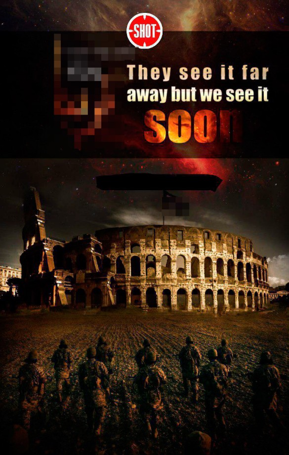 Информацию о намерениях ИГИЛ распространил Telegram-канал Shot. Он опубликовал зловещее фото, на котором изображен Колизей в огне. Надпись на снимке гласит: «Все думают, что до этого не дойдет, но мы сделаем это скоро» (They see it far away but we see it soon). В комментарии же к ужасающему кадру сообщается, что «"ИГ" обещает следующий удар нанести по Италии». Стоит отметить, что других подтверждений этой информации пока нет.