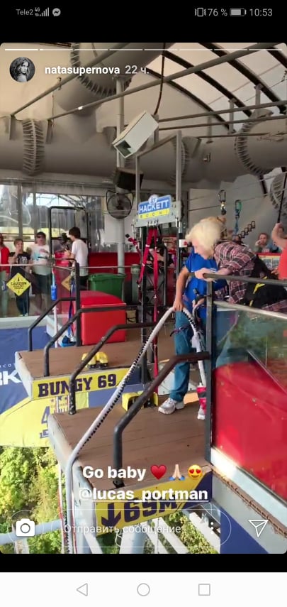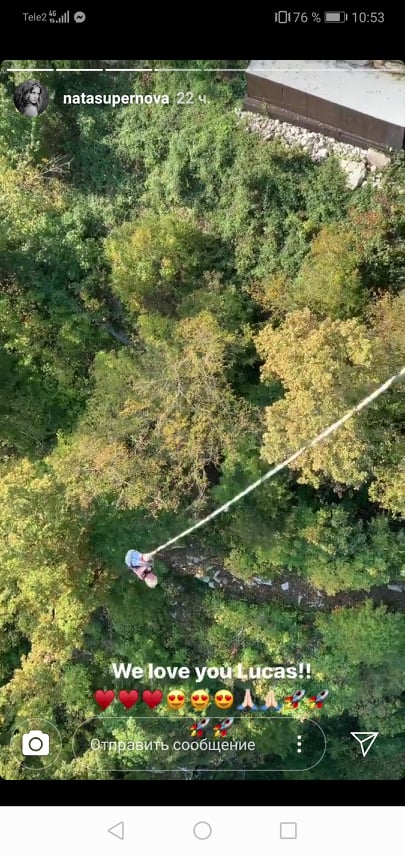 Упомянутое видео появилось в Stories Водяновой. Лукас бесстрашно прыгнул с подвесного моста на длинной эластичной резинке — банджи — под крики окружающих. Нетрудно догадаться, что супермодель осталась в восторге от смелости сына.