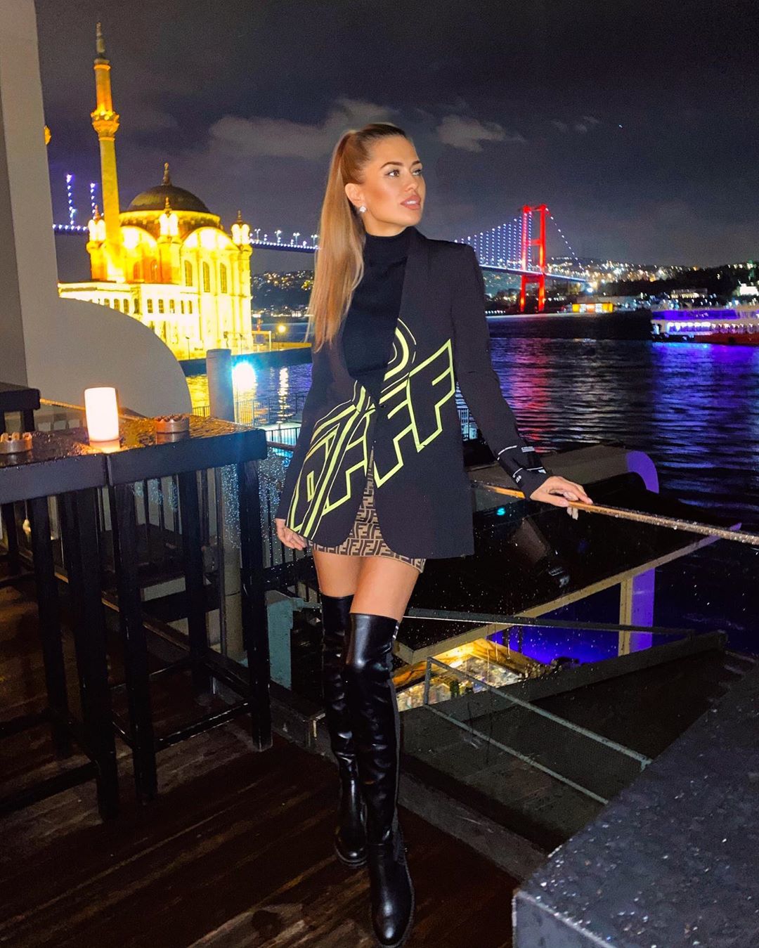 Хоть Виктории Боне не очень повезло с погодой — в Стамбуле было +9 градусов тепла и ветрено, — модель все же прогулялась по городу, прокатилась на лодке и побывала в одном из самых модных клубов-ресторанов города — Ruby, на терассе которого Боня сделала серию ночных фотографий.