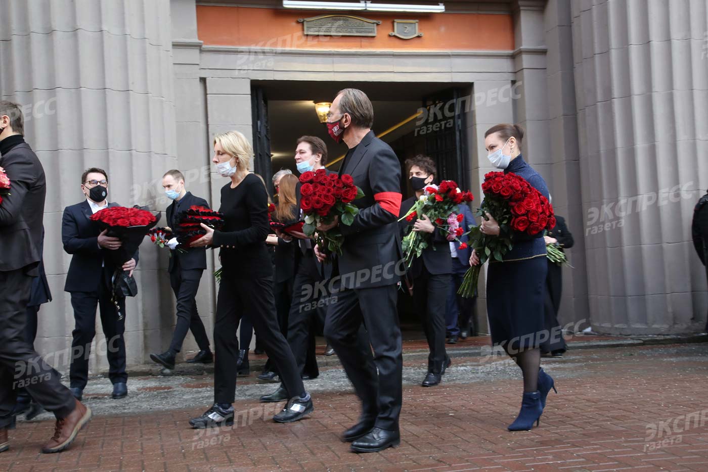 Проститься с любимым артистом пришли около двух тысяч человек. Почти все принесли цветы. Гроб со стеклянной крышкой установили на сцене. Тело Ланового укрыли белым саваном. К концу церемонии сцена была засыпана красными розами.