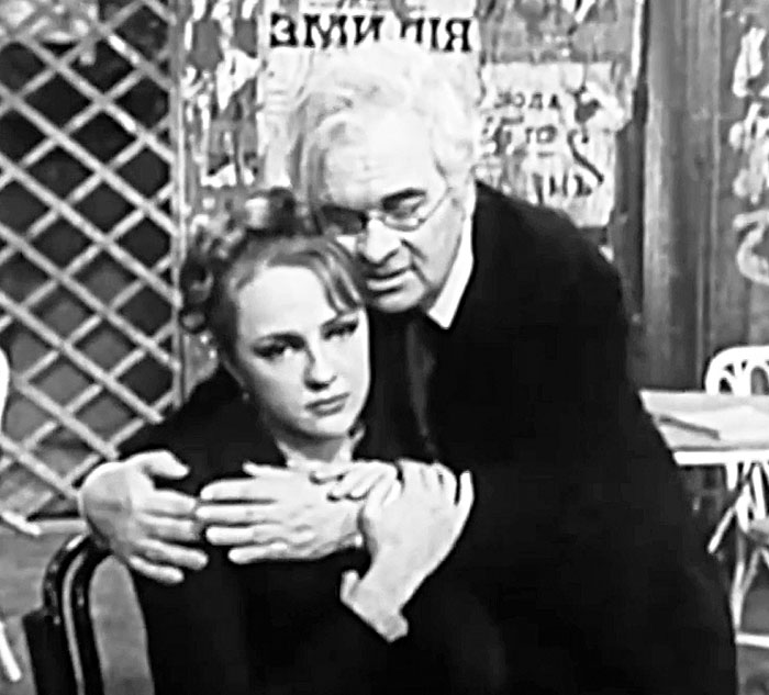 — Ой, какие ножки, какие ручки! Красивая, но такая аморфная! Ноги иксом, жила в Театре Маяковского с древним стариком Штраухом, обобрала его с ног до головы, теперь у нас кого-нибудь оберет. У нас старичков много…
