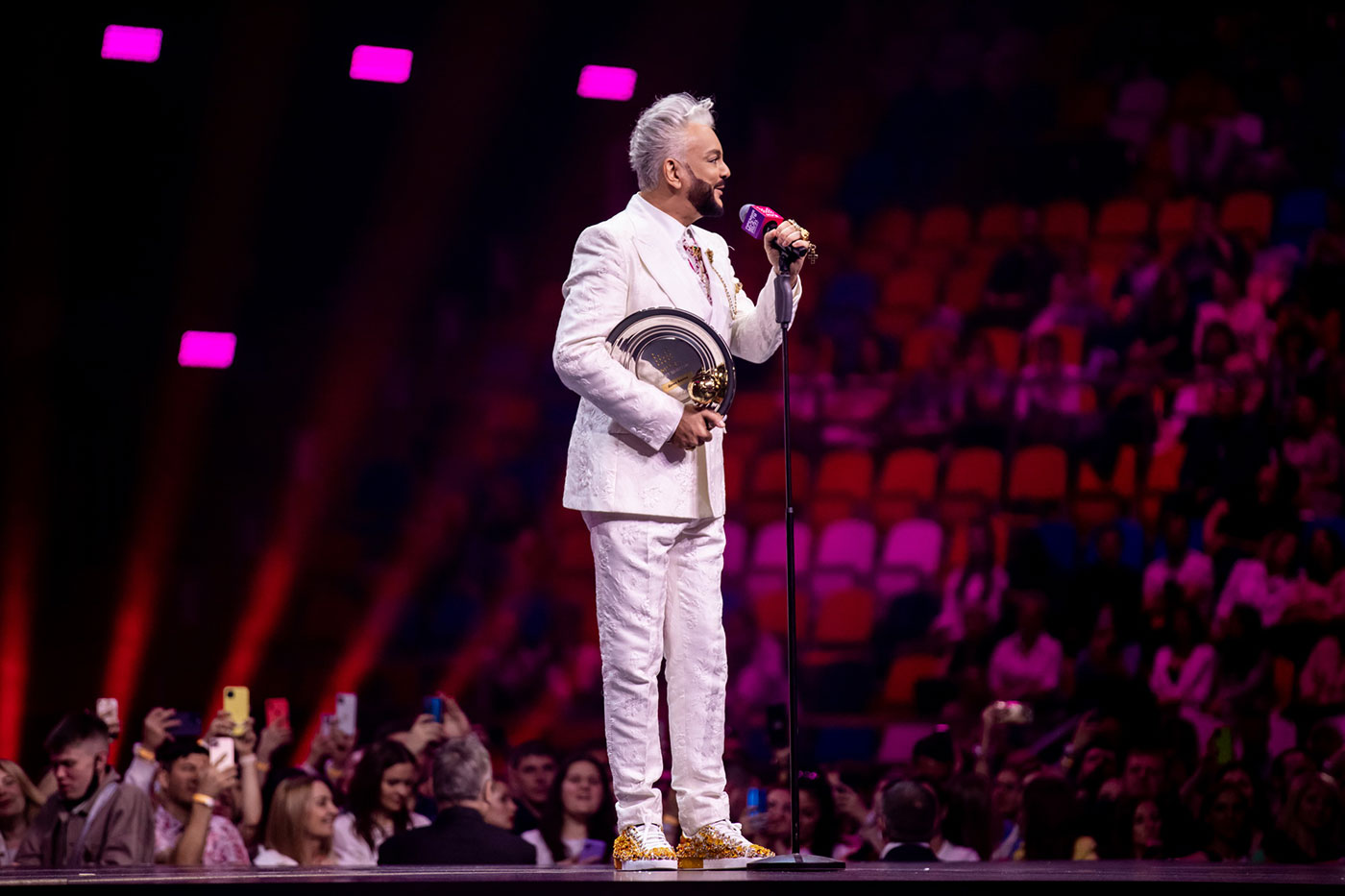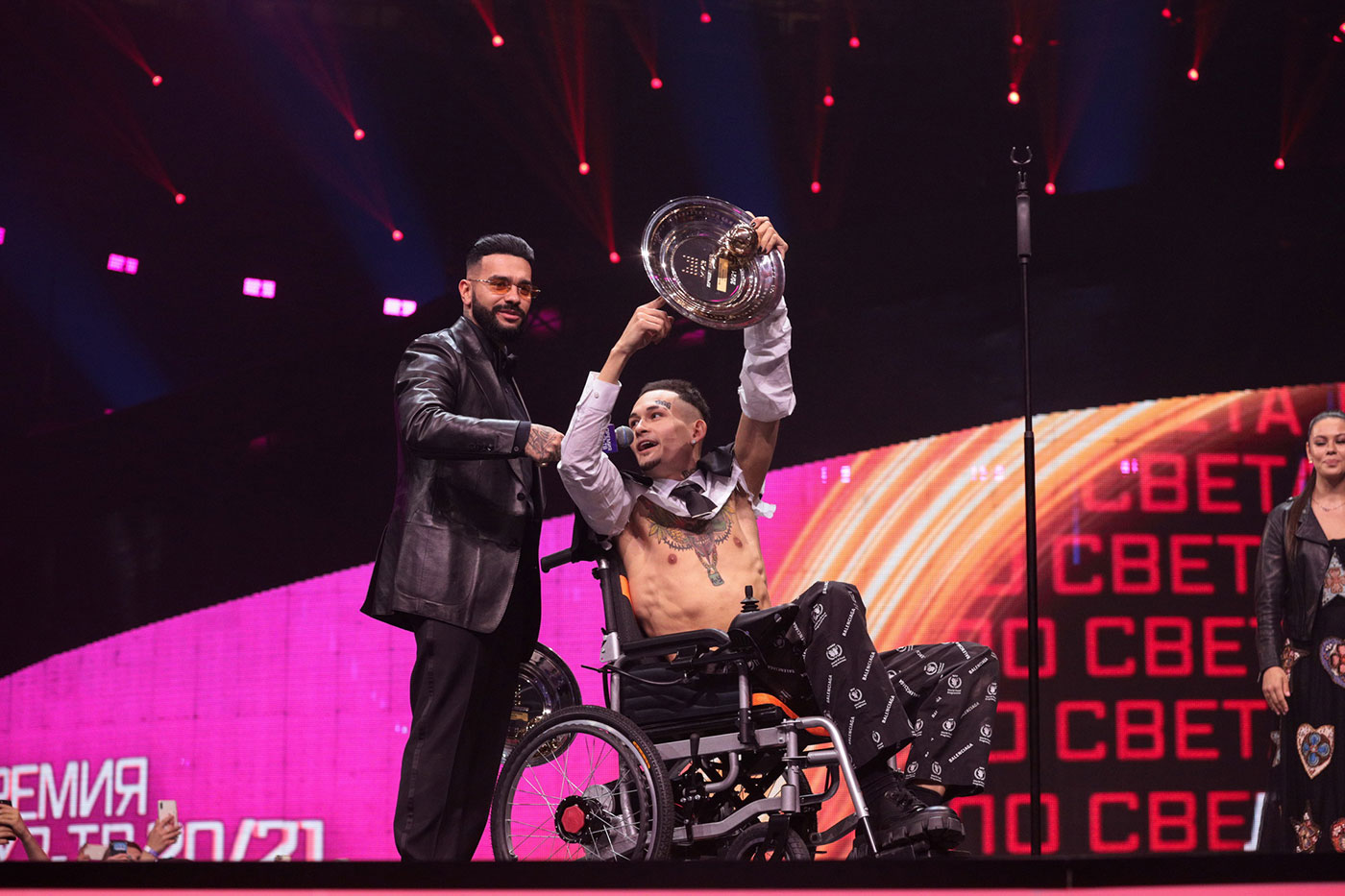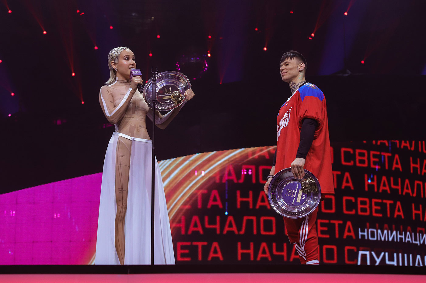 Ну и, конечно, раскрылась главная интрига вечера - кто получит «тарелки»? Больше месяца на официальном сайте зрители голосовали за своих любимых исполнителей, а до этого эксперты музыкальной индустрии выбирали из сотни треков. И вот, наконец, стали известны итоги Премии по итогу двух лет. Особое внимание зрителей всегда приковано к номинациям «Лучшая песня» — ей стала «Комета» JONY, «Лучшая исполнительница» — выиграла Zivert и «Лучший исполнитель» — победитель Артур Пирожков. Однако эпатажный MORGENSHTERN не согласился с итогами, так как ожидал забрать «все четыре тарелки», в которых был номинирован. Но все-таки одну «тарелку» он получил за совместный клип с Тимати «El problema», который зрители в живом исполнении увидели на сцене.