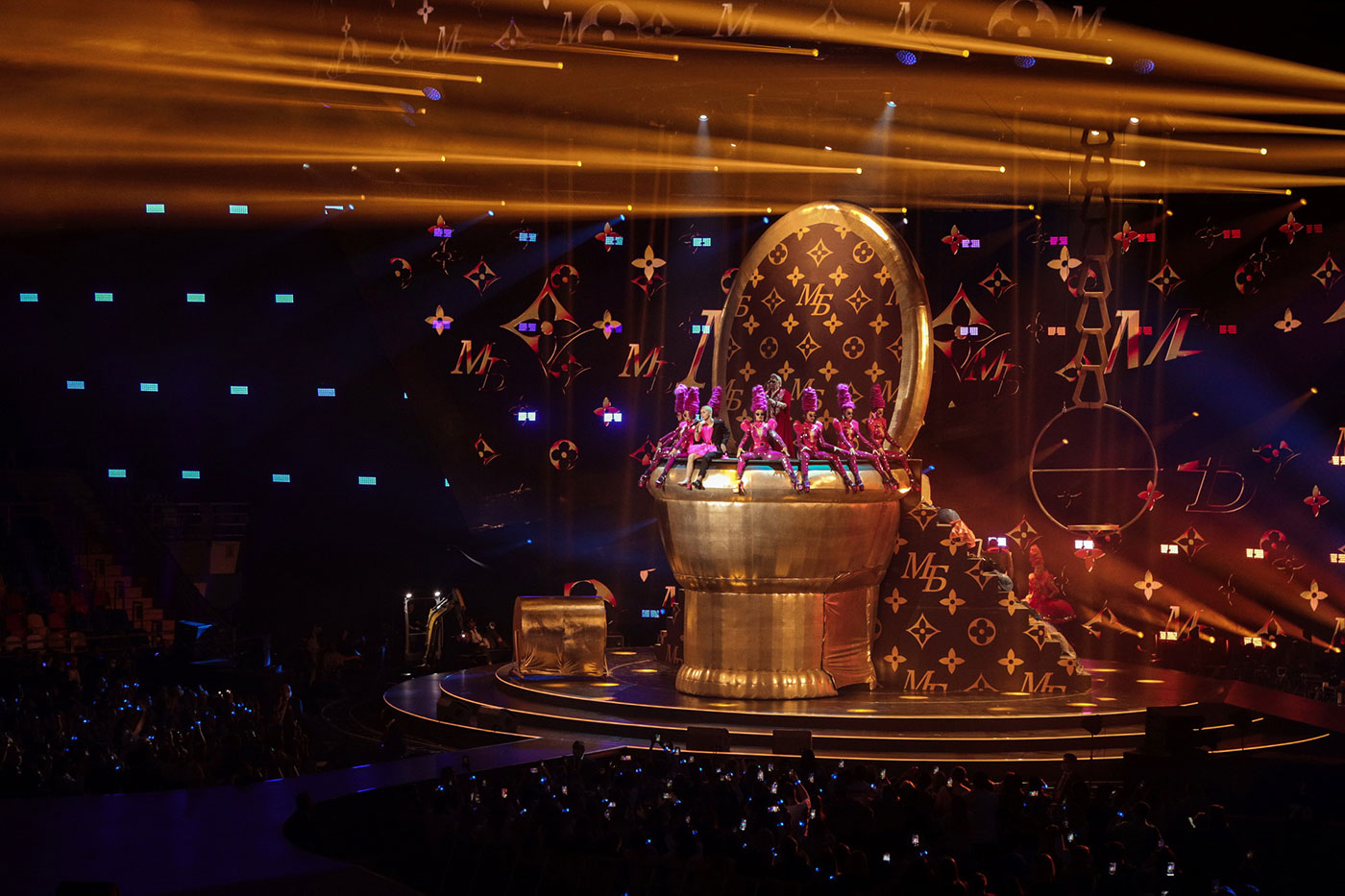 Поистине вызывающим и провокационным стал номер Николая Баскова и Дани Милохина. Два разных поколения спелись в своем хайповом треке «Дико тусим» на восьмиметровом брендовом золотом унитазе прямо посередине сцены. Невероятно модная, но совершенно абсурдная вечеринка иронично высмеяла «богатую жизнь напоказ» и завершилась «сливом» Дани Милохина.