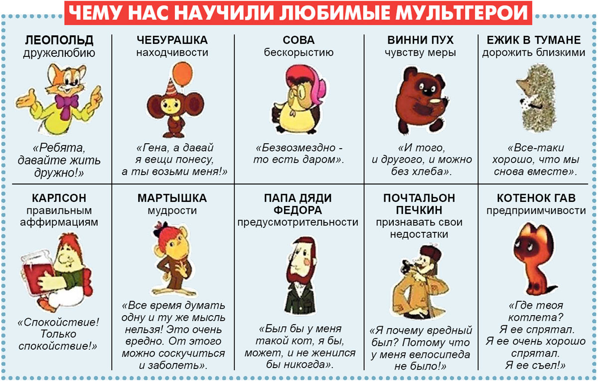 Погружение в мир сказок, уход в выдуманный мир помогал реабилитироваться. Так выработался фирменный знак наших мультиков. Но мы не выделялись по технике, наши ноу-хау были маленькие, локальные. Но существовала одна черта, из-за которой советские мультфильмы действительно стали уникальным явлением. Это доброта.