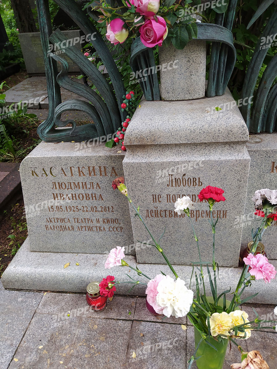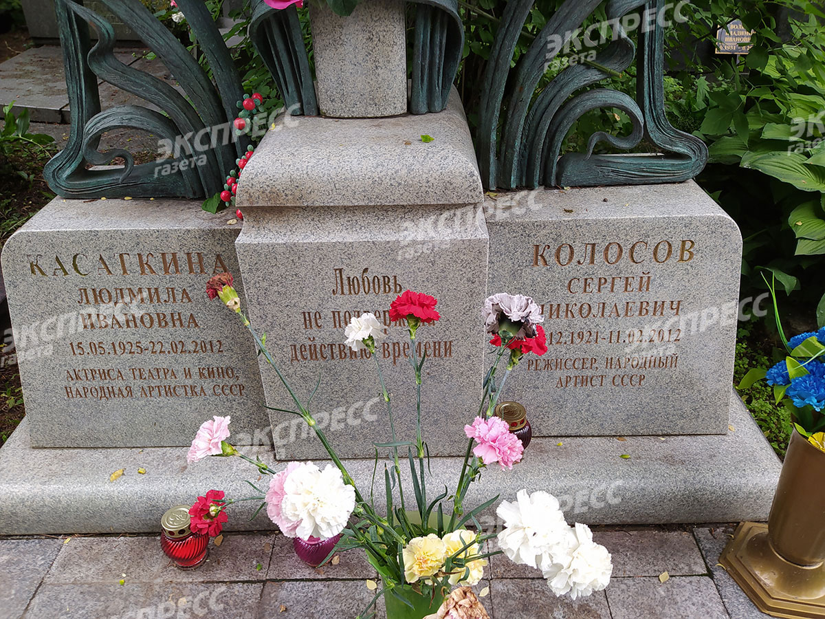 На могиле супругов на Новодевичьем кладбище им установили общий памятник: светлый каменный крест, витиеватая решетка и выбитый в металле совместный портрет. «Любовь не подвержена действию времени», – начертано на надгробии.