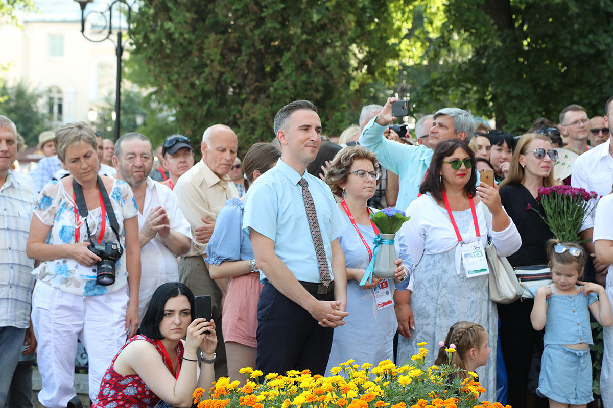 А накануне состоялось также важное событие - открытие памятного барельефа основателю фестиваля, его первому директору Родиону Бассу, немало сделавшего для развития фестивального движения.Сейчас традиции свято чтит и преумножает нынешний директор – Глеб Лапицкий, он принимал участие в открытии доски и первым возложил цветы.
