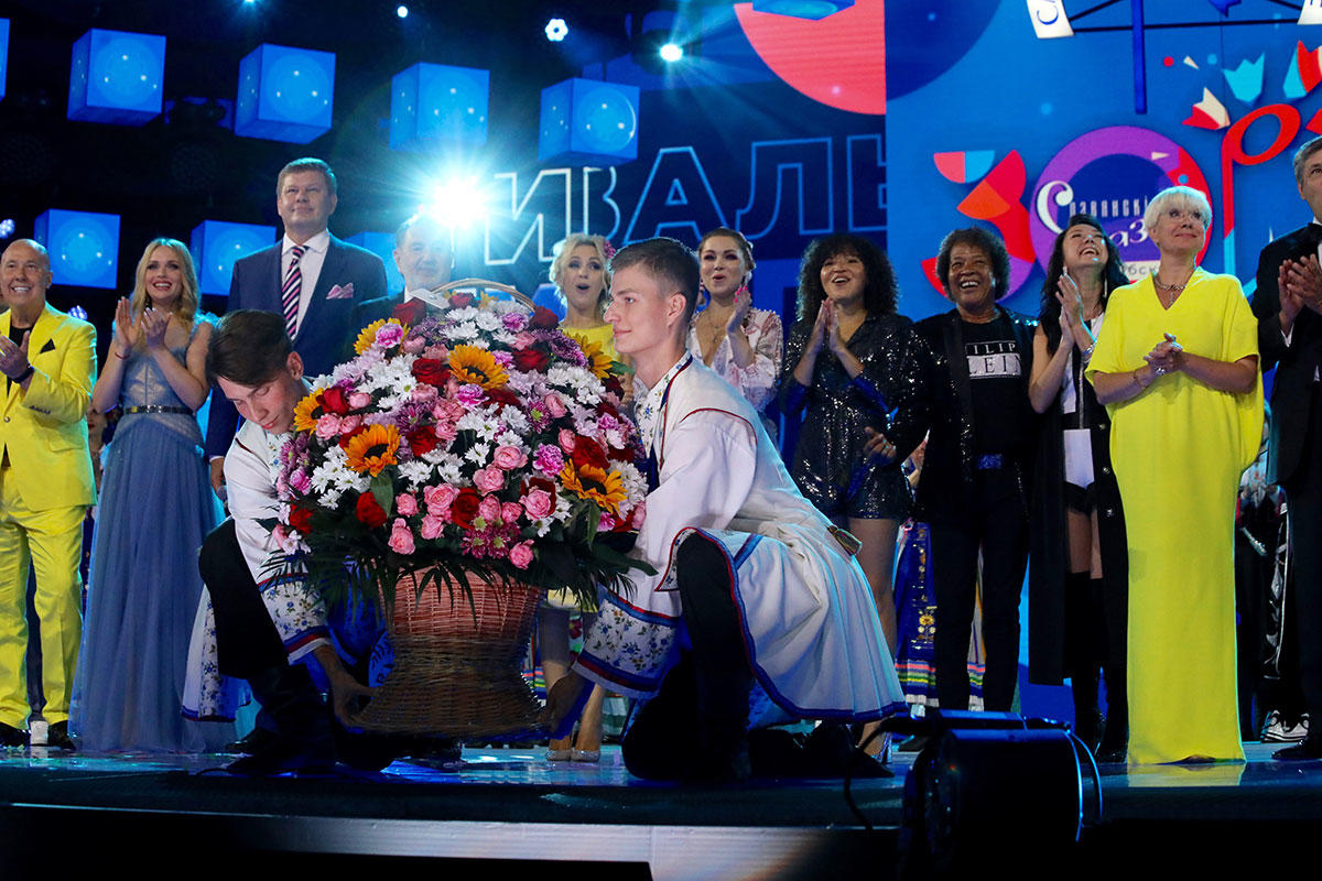 Витебская публика тепло встретила и Тамару Гвердцители, и гостью из Казахстана Розу Рымбаеву. Легенда сцены Эдита Пьеха поздравила фестиваль с юбилеем по видеосвязи, а вот ее дочь Илона Броневицкая и внук Стас Пьеха приехали лично и подарили музыкальный номер. Неожиданно на сцене появился Аскольд Запашный - нет, он не привез в Витебск тигров. Но цирковые элементы в программе все же присутствовали - Аскольд представил фантастических акробатов. Бурю аплодисментов «сорвал» и «Хор Турецкого».