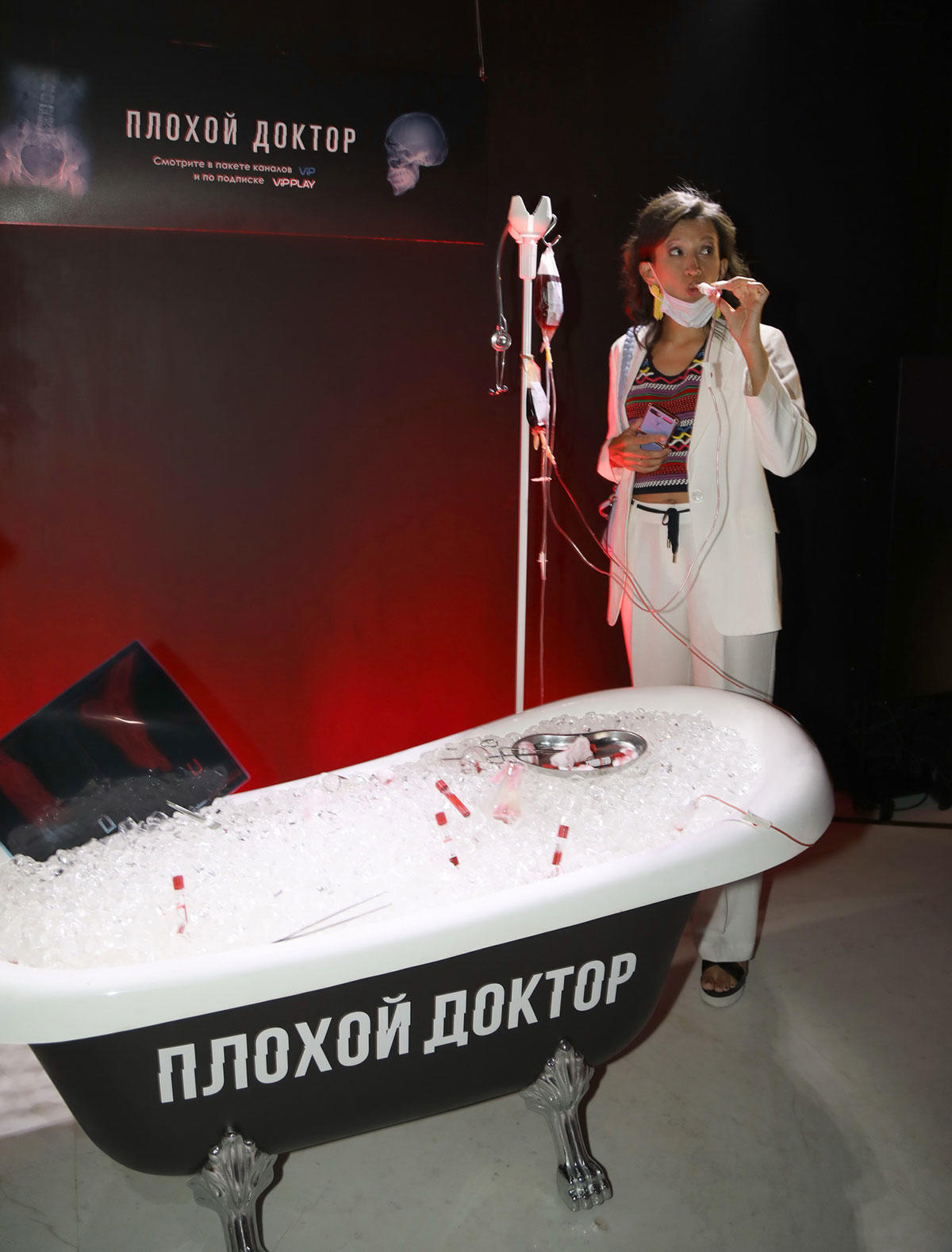 Несмотря на жару и сезон летних отпусков, зал ломился от знаменитостей. Заходя в фойе, они тут же натыкались взглядом на... огромную ванну со шприцами, хирургическими инструментами, аппаратом для капельниц... Кто-то тут же отходил подальше, а вот Елена Борщева не побоялась и смело попозировала прямо у краешка этой самой ванной. Настасья Самбурская, Олеся Судзиловская, DJ Грув и многие другие, выходя после просмотра первой серии из зала, признавались, что сериал «им зашел». А значит, они с нетерпением будут ждать остальные серии.