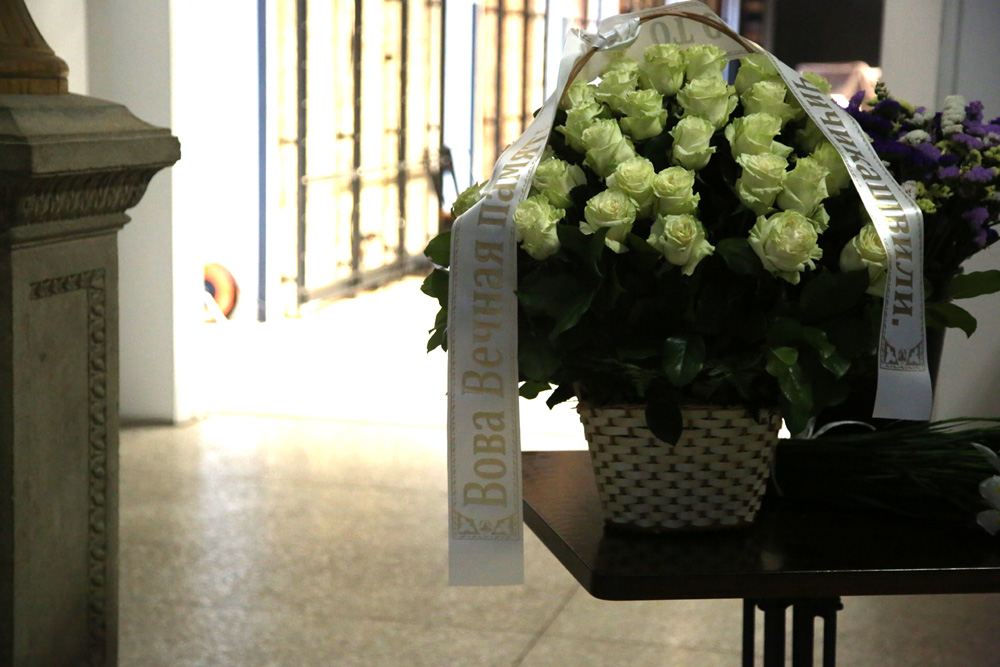 Тела с гробом в зале не было, на стенах демонстрировались фотографии погибшего. Владимир Дыховичный будет похоронен в США, где живет его мать Ольга Черепанова.