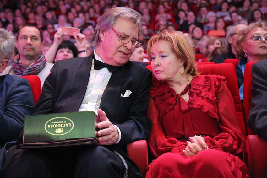 Гильдию актеров кино России учредили в декабре 1988-го по инициативе Евгения Жарикова, Евгения Герасимова и Всеволода Шиловского. Жариков стал ее первым президентом. В 2000-м его сменил Сергей Жигунов. Также недолгое время кресло президента занимал Борис Галкин. А последние три года на этом посту - Сергей Никоненко. Правда, прийти на юбилейный вечер он не смог. По уважительной причине – улетел на гастроли в Питер со спектаклем «Свободная любовь». Однако Сергей Петрович записал видеообращение, а на сцене его представила директор Гильдии Валерия Гущина.
