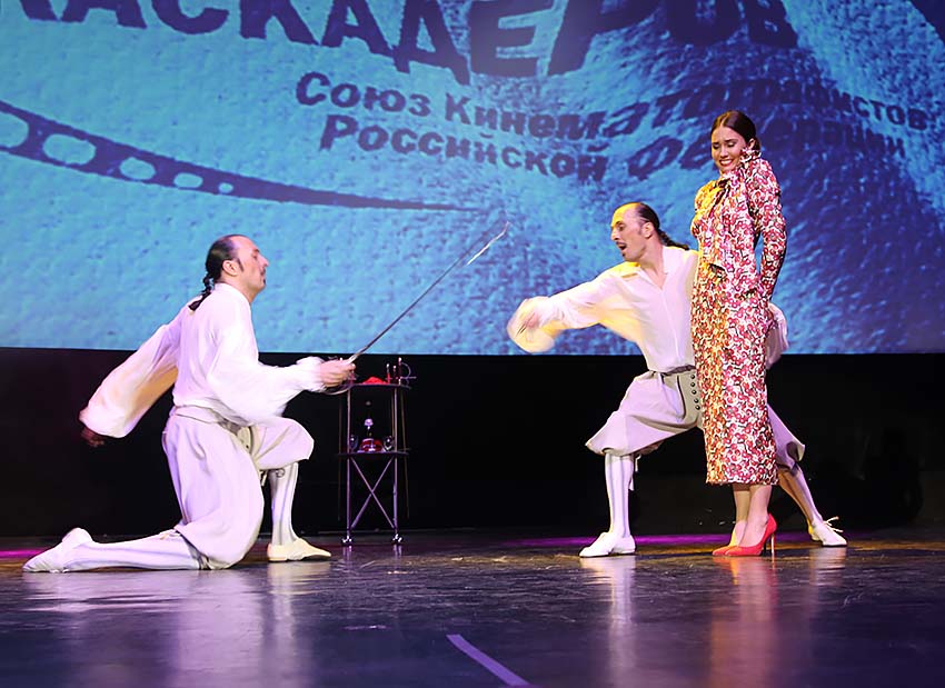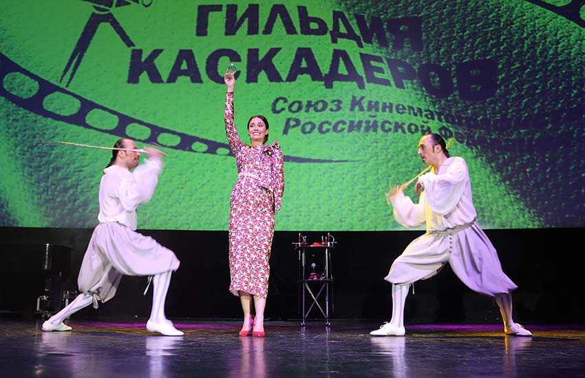 Подарком для всех собравшихся стало выступление каскадера, показавшего трюки на мотоцикле. А также гостей вечера побаловали небольшой шоу-программой от фехтовального дуэта «Бретер». Они заставили понервничать гостей и, особенно, ведущую мероприятия - Агату Муцениеце. Агата должна была держать бокал с шампанским над головой, пока фехтовальщики лихо размахивали шпагами прямо перед ее лицом. По выражению лица Муцениеце было ясно, что ей страшно, но актриса из последних сил старалась улыбаться. А потом за кулисами призналась: «Думала останусь без головы!»