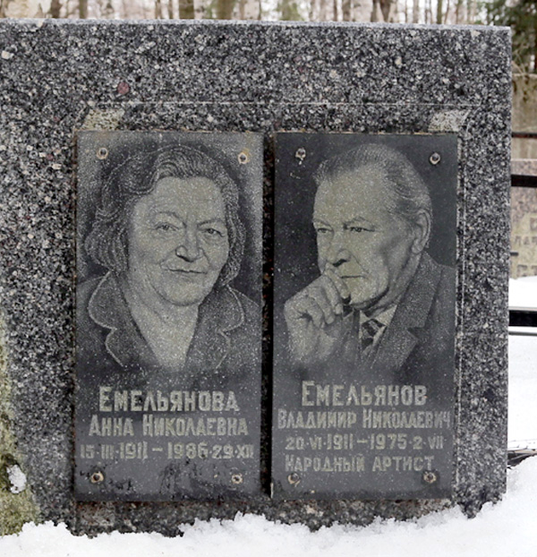 В кино харизматичный Емельянов в основном играл начальников: директоров заводов, председателей колхозов, министров, комиссаров, офицеров. В последний год жизни народного артиста РФ на экраны вышли четыре фильма с его участием. Мог быть и пятый, но съемки в нем оказались для Владимира Николаевича роковыми. 1 июля 1975-го весь день Емельянов провел на съемочной площадке в Донецке на адском солнцепеке. А на следующее утро всегда пунктуальный актер на площадку не явился. Его нашли в гостиничном номере лежащим на полу без сознания. Врачи сразу поняли, что это инсульт, несколько часов боролись за жизнь Емельянова, но спасти его не смогли. Похоронили актера на Бабушкинском кладбище в Москве. Сейчас рядом с ним покоятся его жена Анна Николаевна и их сын Леонид. Дочери Наталье, ухаживающей за могилками, в апреле исполнится 65.