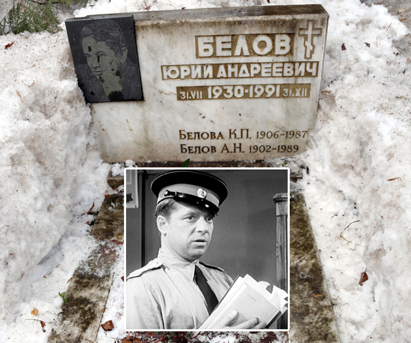 Проснулся знаменитым после съемок у Эльдара Рязанова в «Карнавальной ночи». В 60-е беспрерывно играл главные роли, а потом его резко перестали приглашать. Дело в том, что в киношных кругах прошел слух, мол, Белов «не от мира сего». По одной из версий, психика артиста надломилась в результате расставания с актрисой Надеждой Румянцевой, на которой он мечтал жениться. По другой версии, Юрий однажды ляпнул в компании что-то нелицеприятное про Никиту Хрущева. Кто-то донес на актера, и, чтобы избежать уголовного преследования, он ненадолго лег в психушку. Так или иначе, карьера Белова пошла под откос. Чтобы выжить, он «бомбил» на своем стареньком «Москвиче». А незадолго до смерти его, гуляющего с собачкой, у дома на Мосфильмовской случайно встретили Людмила Гурченко и Станислав Садальский. «Что у него с лицом? Какая-то дикая улыбка», - спросил Стас. «А ты попробуй, просиди годы без работы в ожидании звонка», - ответила Людмила Марковна. Белов внезапно скончался 31 декабря 1991 года во время просмотра «Карнавальной ночи» и упокоился в одной могиле с родителями.