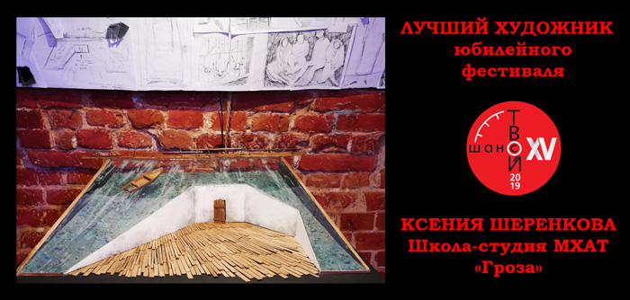 Лучшим молодым художником по итогам самой крупной российской выставки молодых сценографов имени Олега Щейнциса, проходившей в рамках фестиваля «Твой шанс» в «Боярских палатах СТД», стала студентка факультета сценографии и театральной технологии Школы-студии МХАТ Ксения Шеренковаза макет к спектаклю по пьесе Александра Островского «Гроза».