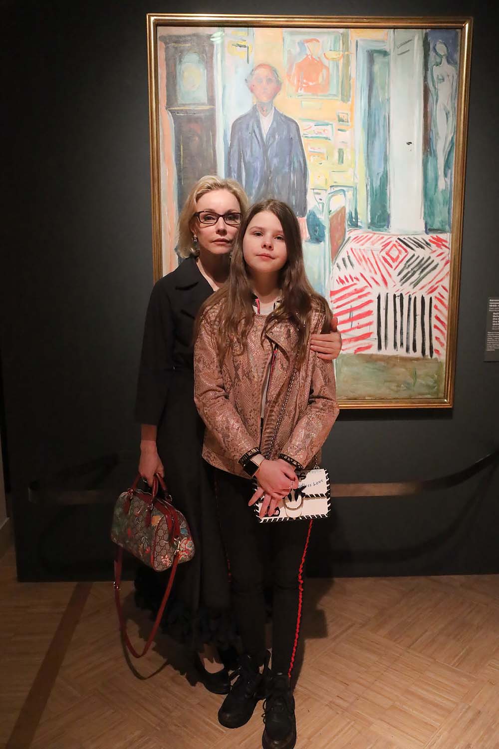 Помимо живописи в Москве представлены графические рисунки, фотографии и мемориальные предметы Мунка. Не могла остаться в стороне от столь важного культурного события и Рената Литвинова - с собой на выставку она привела свою несовершеннолетнюю дочь Ульяну - девушке 18 лет исполнится лишь в июле этого года. Мать и дочь были очень впечатлены увиденным, а наиболее понравившиеся работы даже снимали на камеры своих мобильных телефонов.