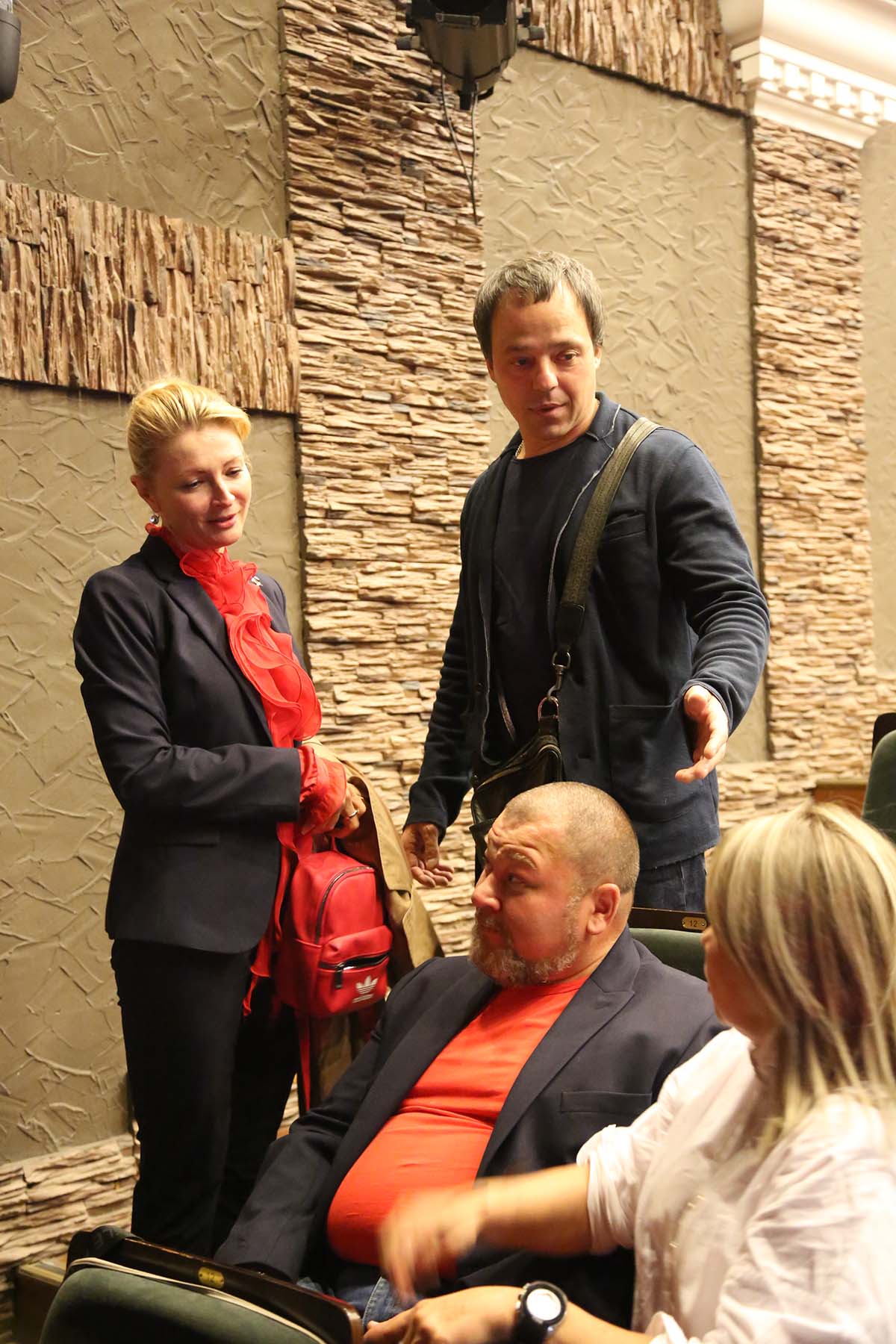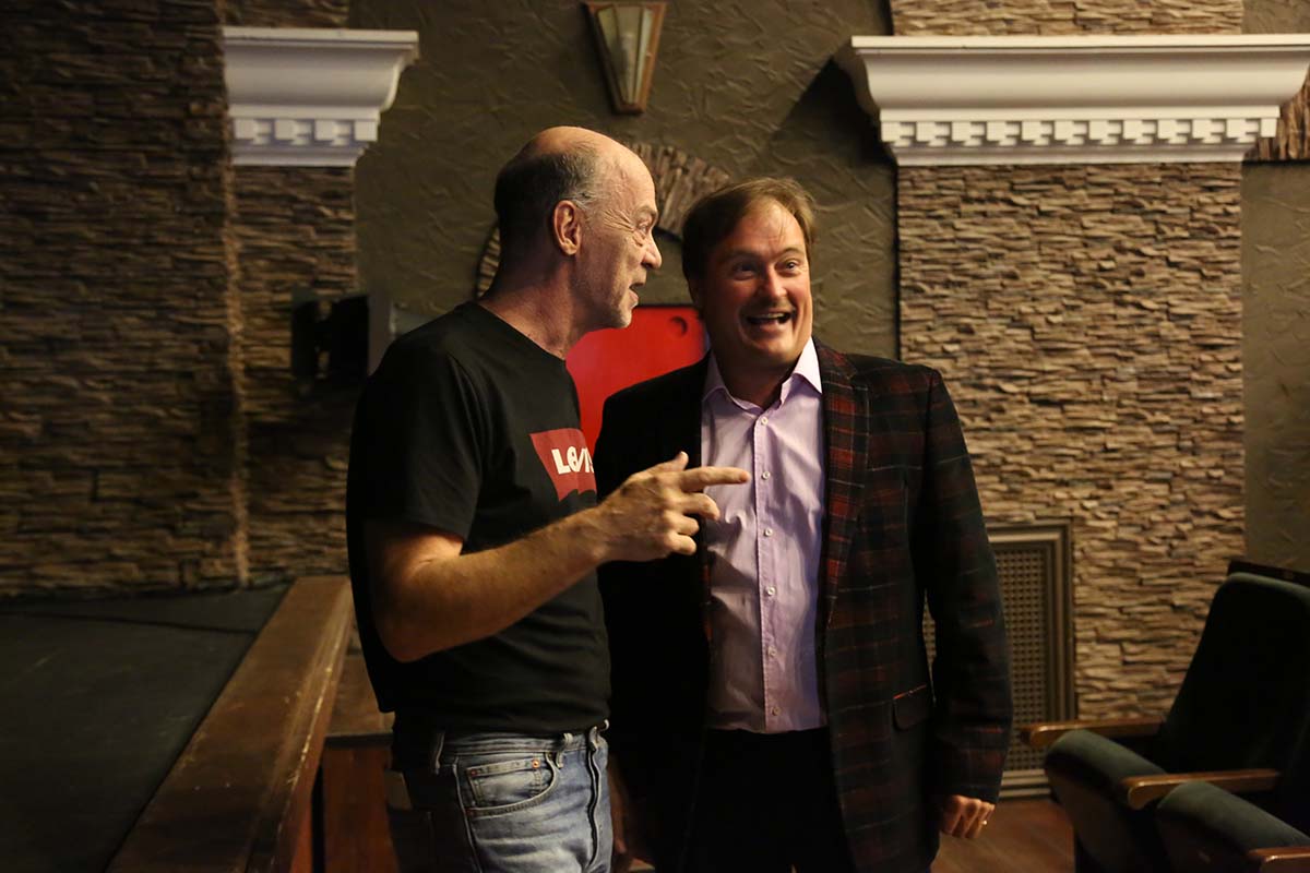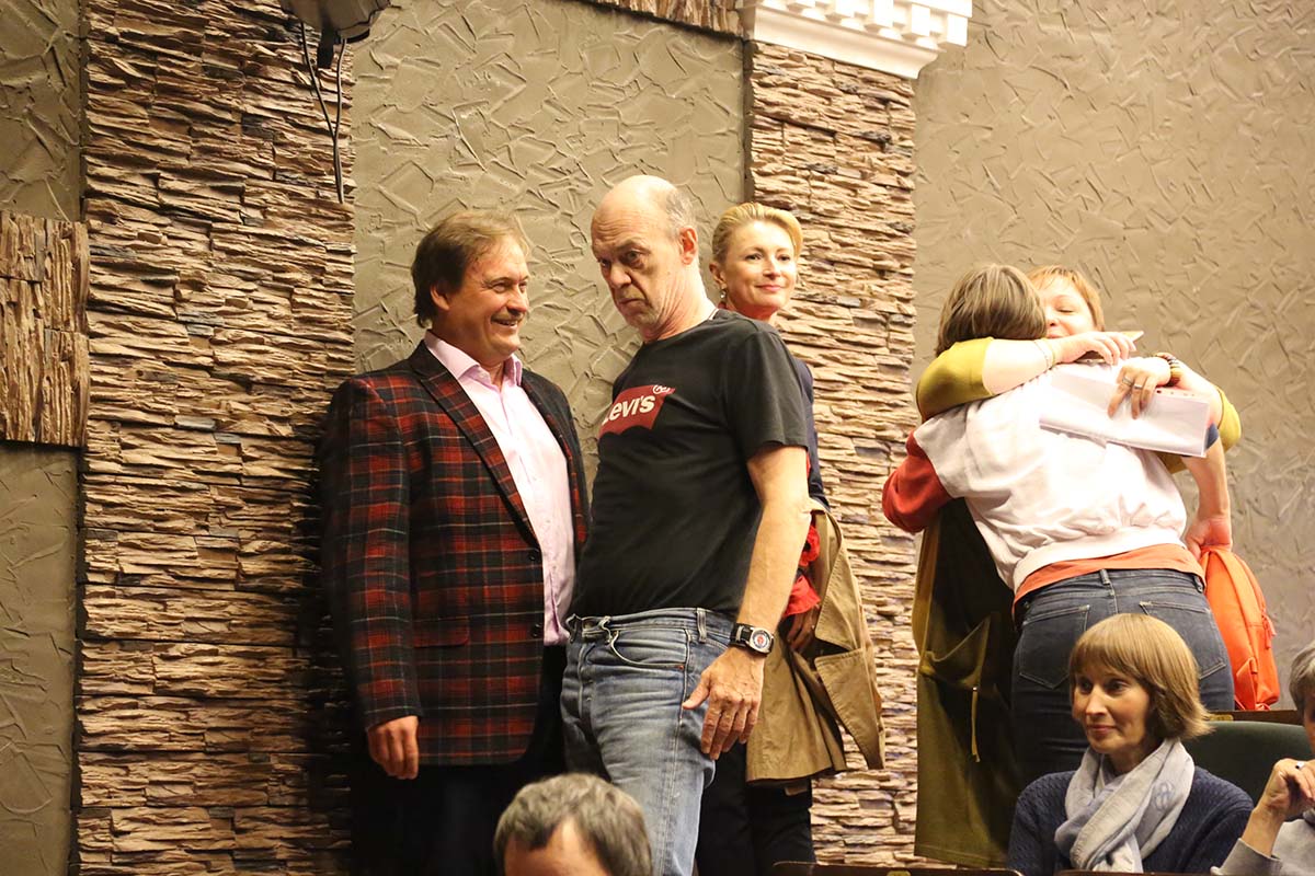 На сбор труппы пришли ведущие артисты труппы и распили символический огромный бокал коньяка на всех. А художественный руководитель Марк Розовский объявил какие премьеры ждут зрителей.