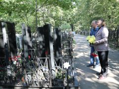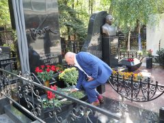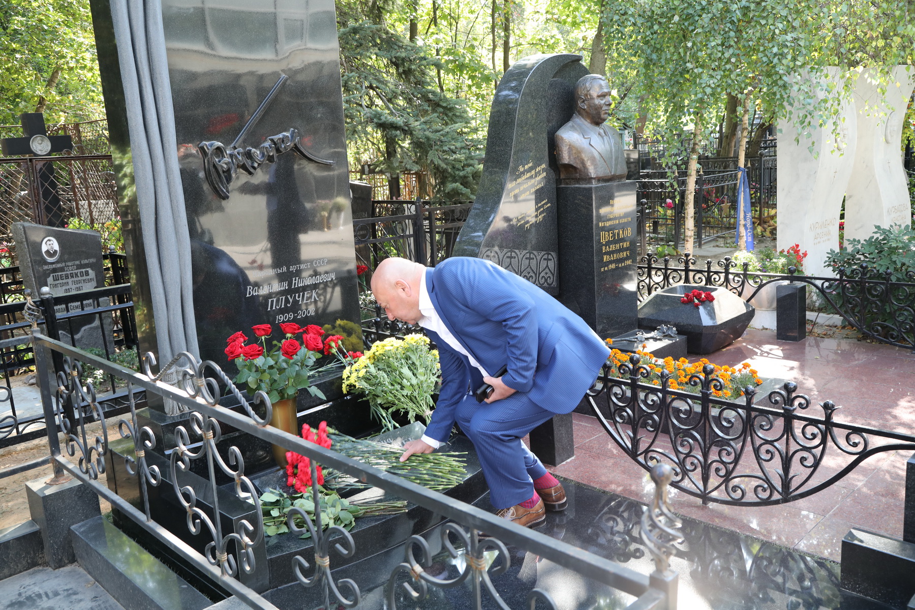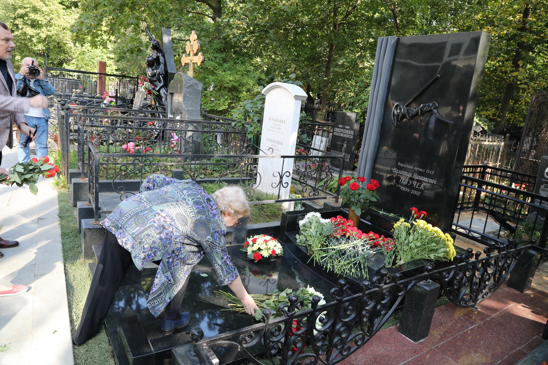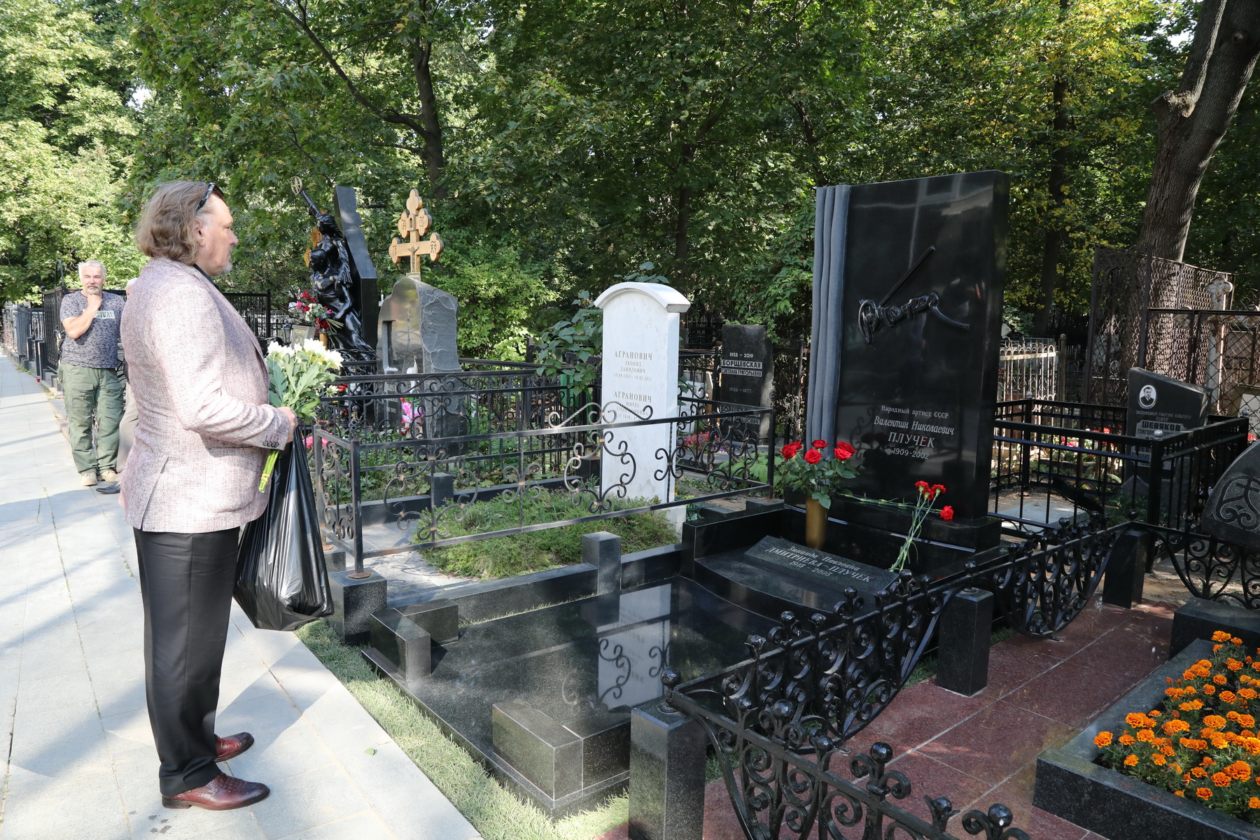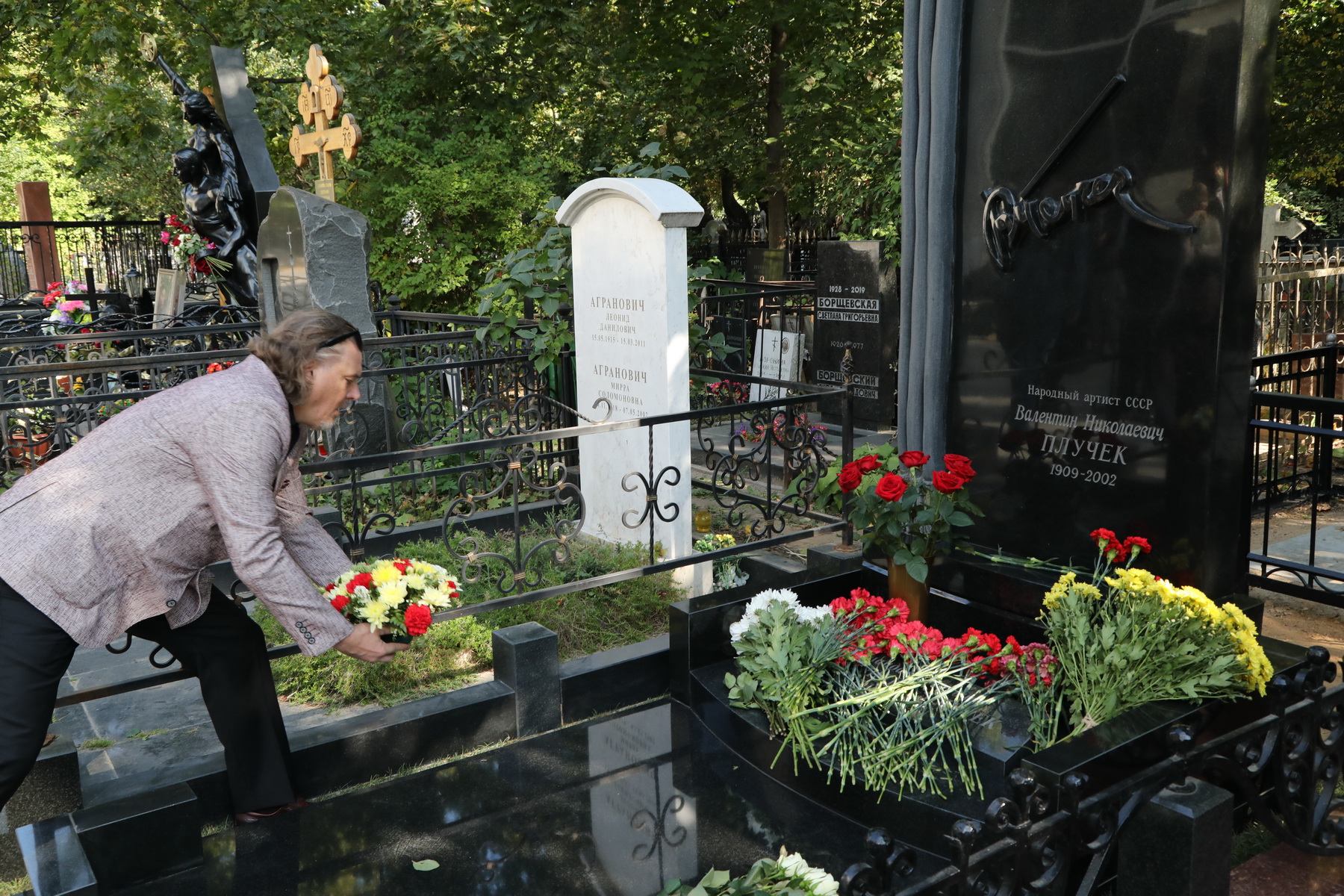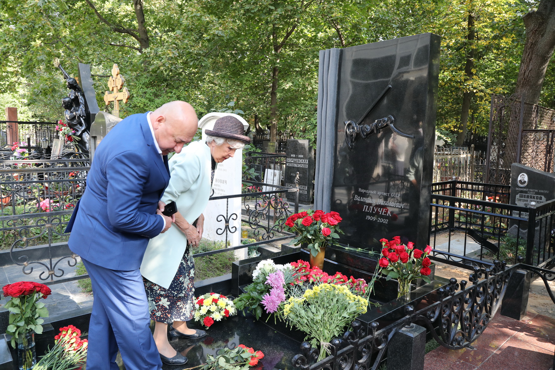 Максим Аверин, Вера Васильева, Нина Корниенко, Зоя Зелинская почтили память Валентина Плучека в день его 110-летия на Ваганьковском кладбище