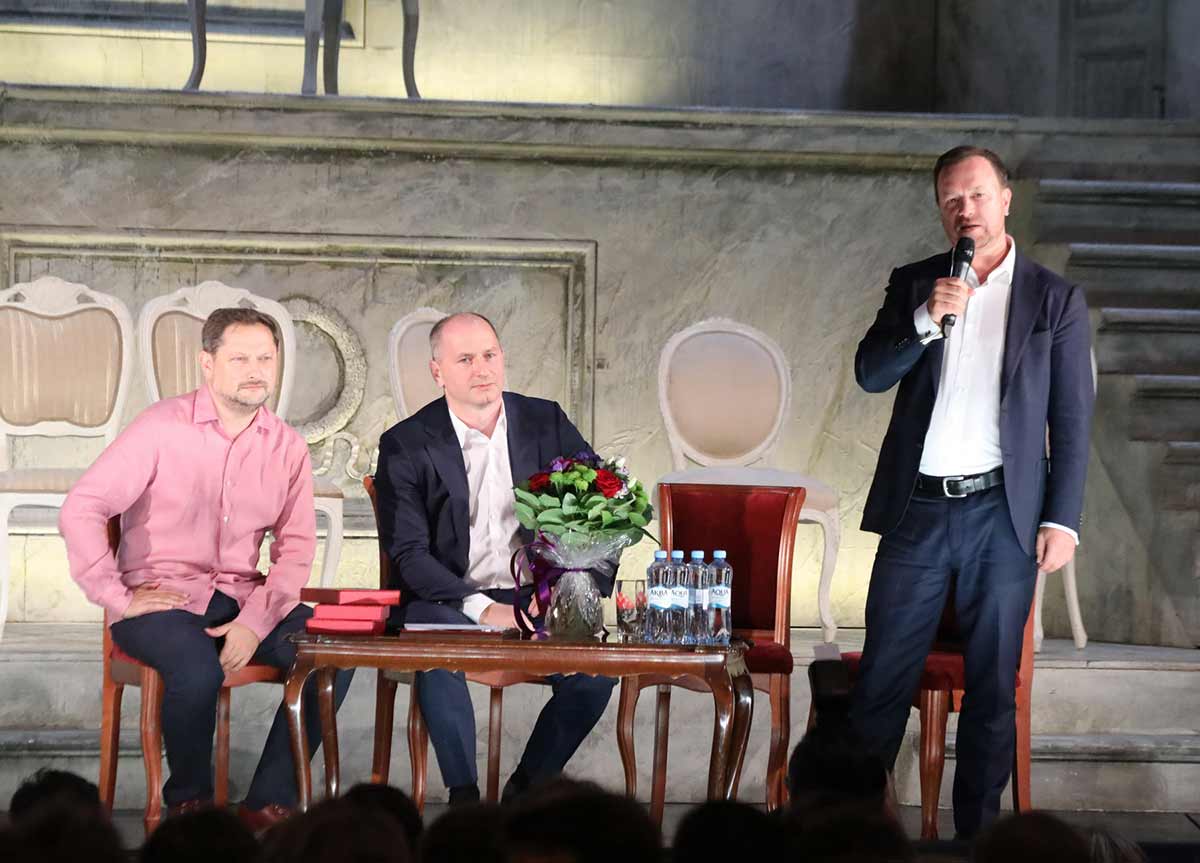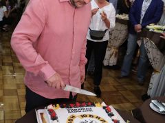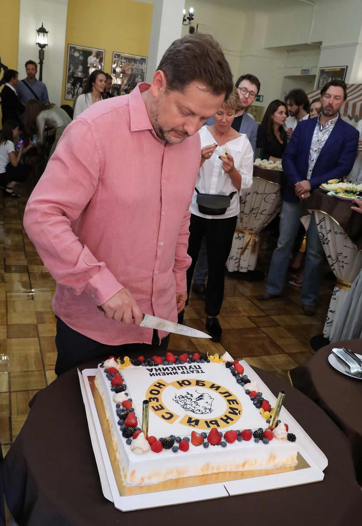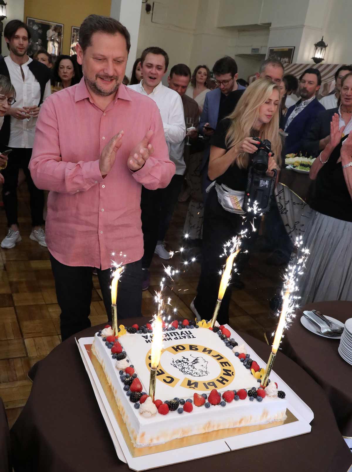 После того, как были оглашены все планы, Евгений Писарев пригласил всех выпить по бокалу шампанского и отведать праздничный юбилейный торт.