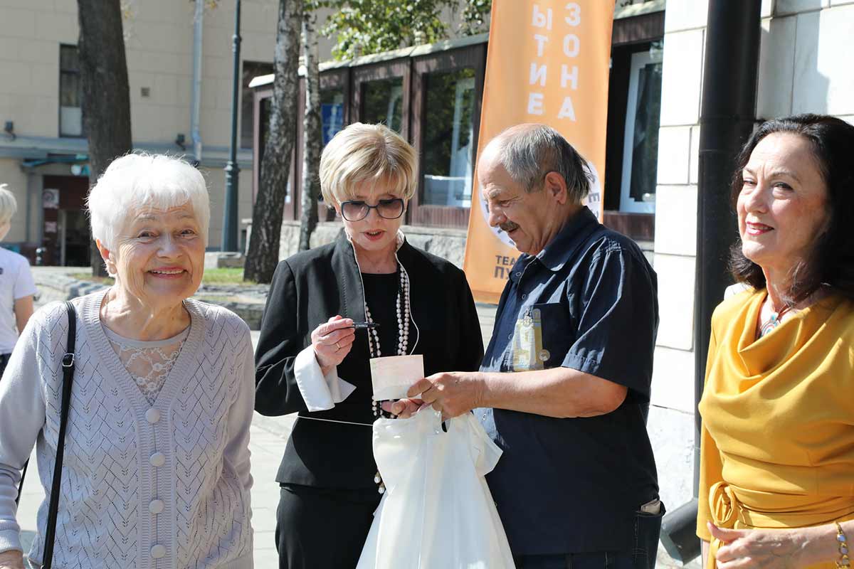 После летних каникул открыл свой юбилейный сезон Театр имени Пушкина.Перед входом дежурили поклонники - ведь в самом деле, когда еще будет счастливая возможность взять автограф у самой Веры Алентовой, или же Виктории Исаковой, Таисии Вилковой, Александра Матросова, Александры Урсуляк, Анны Бегуновой, многих других звезд.