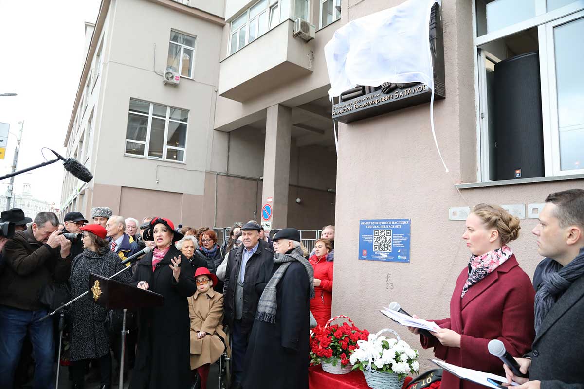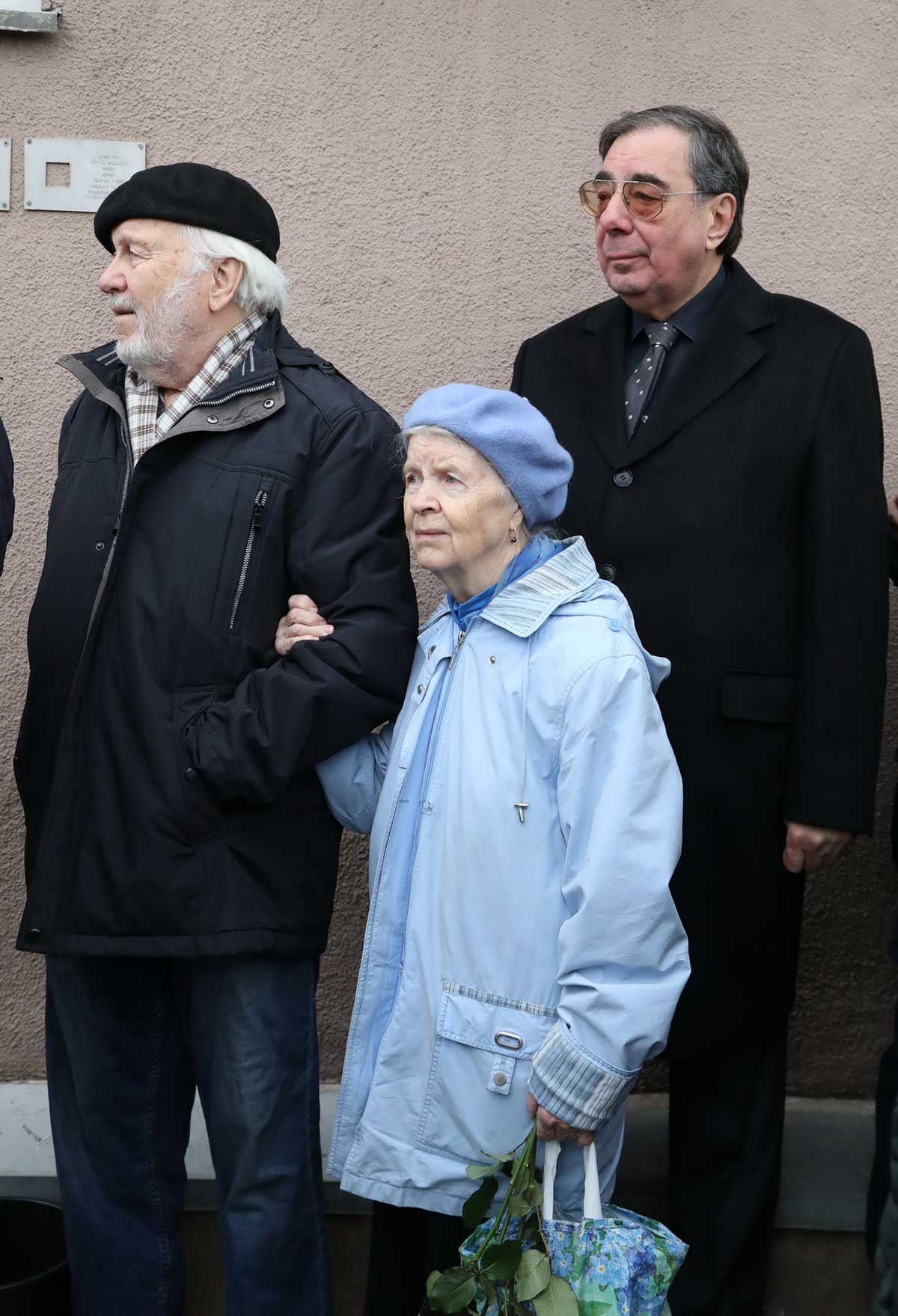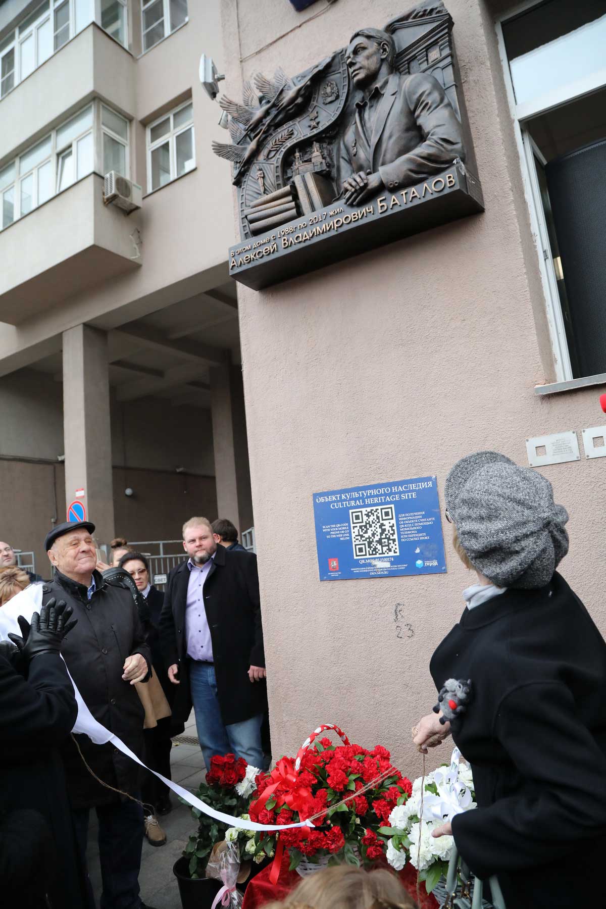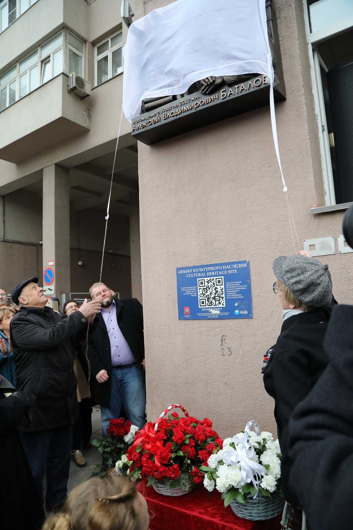 Были на церемонии и те, кто приложил непосредственные усилия к тому, чтобы эта мемориальная доска появилась, — это Наталия Дрожжина и Михаил Цывин, продюсер Ольга Дунаева и, конечно, родственники Алексея Баталова — жена Гитана и две его дочери, старшая, Надежда, и младшая, Мария. Кстати, именно Марии принадлежит идея оформления доски.