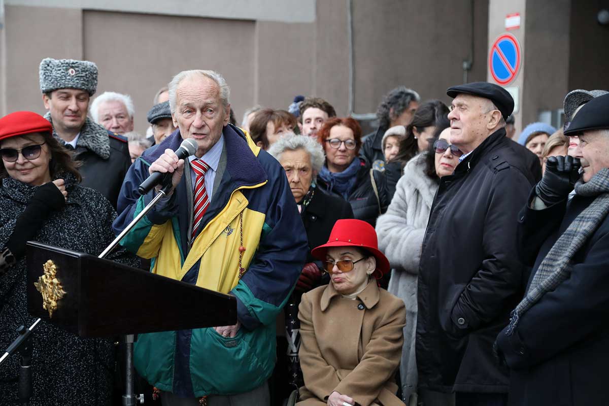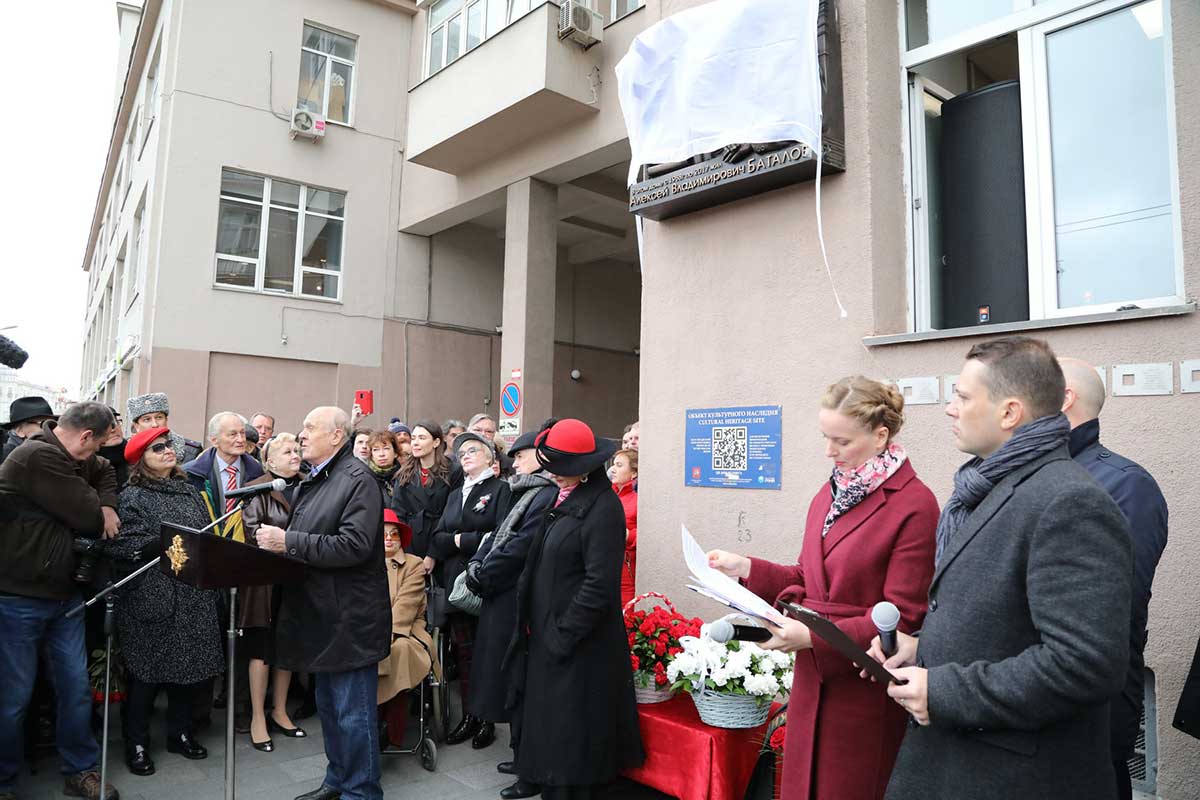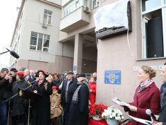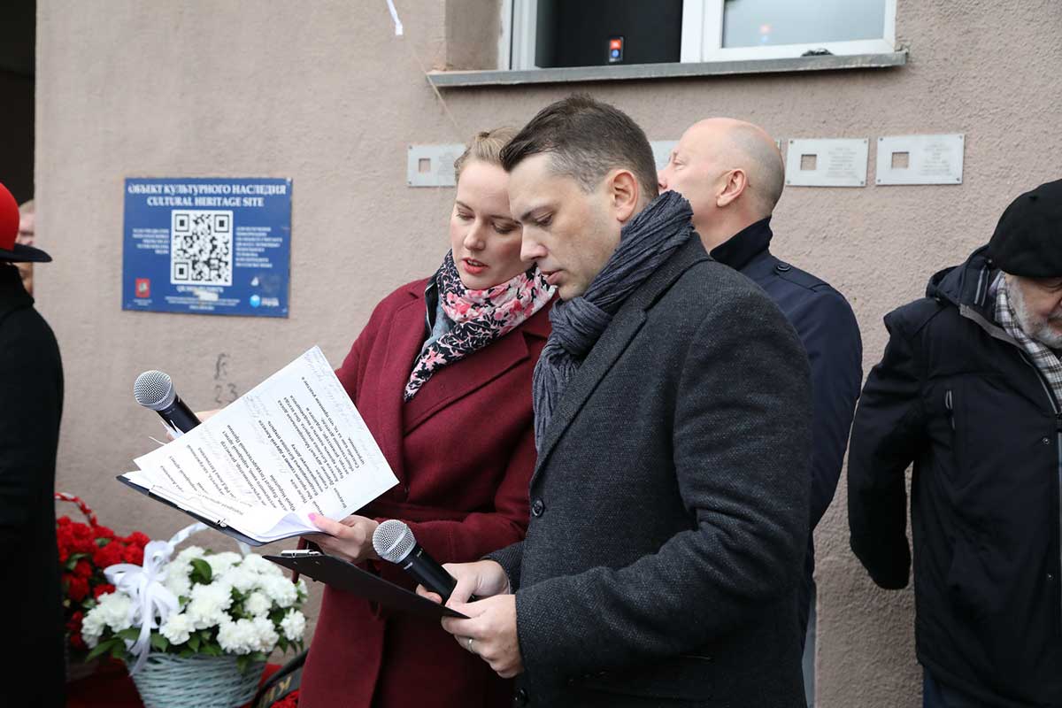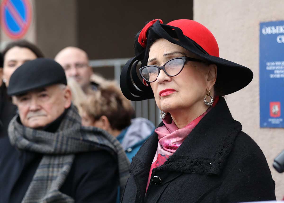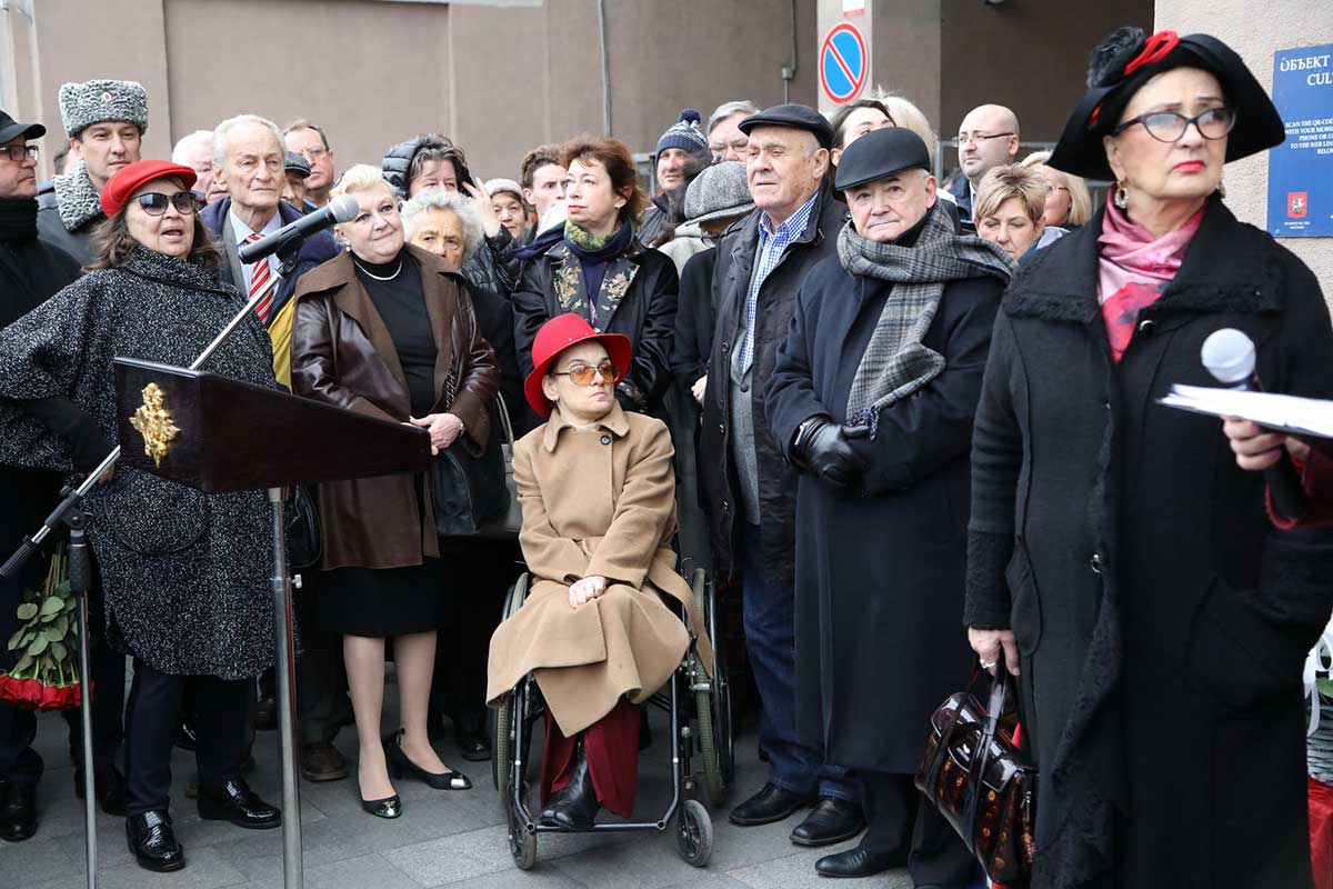 Были на церемонии и те, кто приложил непосредственные усилия к тому, чтобы эта мемориальная доска появилась, — это Наталия Дрожжина и Михаил Цывин, продюсер Ольга Дунаева и, конечно, родственники Алексея Баталова — жена Гитана и две его дочери, старшая, Надежда, и младшая, Мария. Кстати, именно Марии принадлежит идея оформления доски.