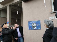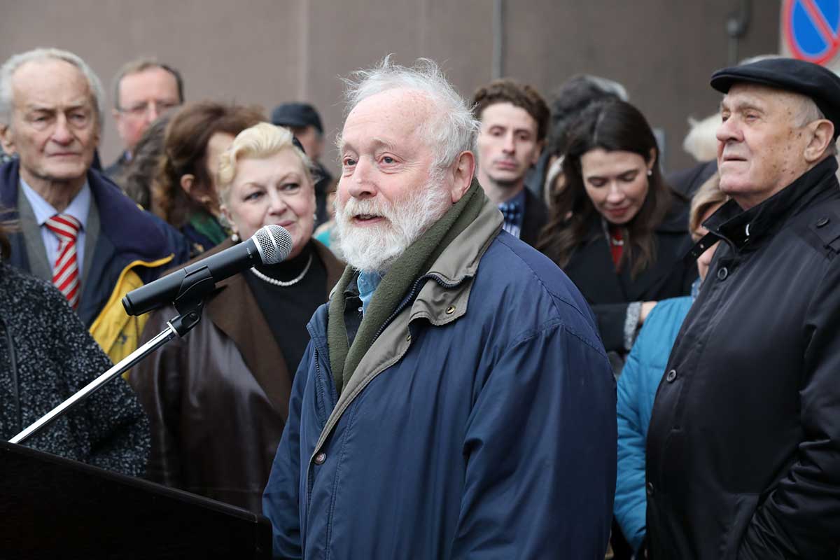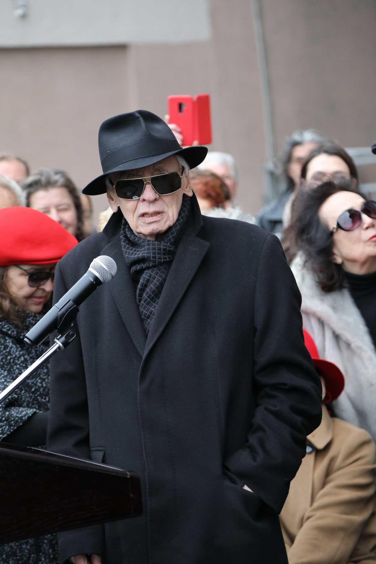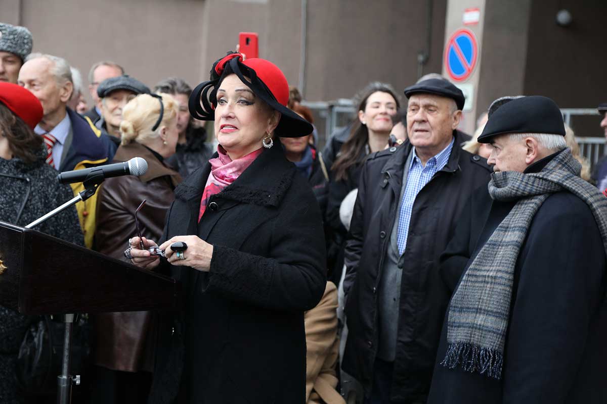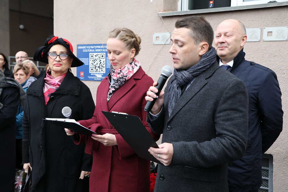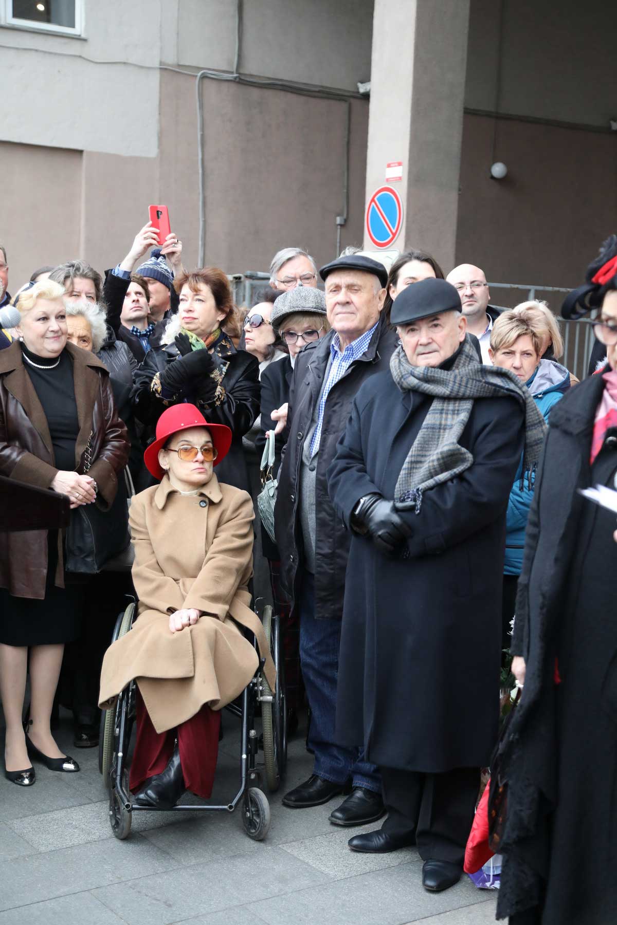 Были на церемонии и те, кто приложил непосредственные усилия к тому, чтобы эта мемориальная доска появилась, — это Наталия Дрожжина и Михаил Цывин, продюсер Ольга Дунаева и, конечно, родственники Алексея Баталова — жена Гитана и две его дочери, старшая, Надежда, и младшая, Мария. Кстати, именно Марии принадлежит идея оформления доски.
