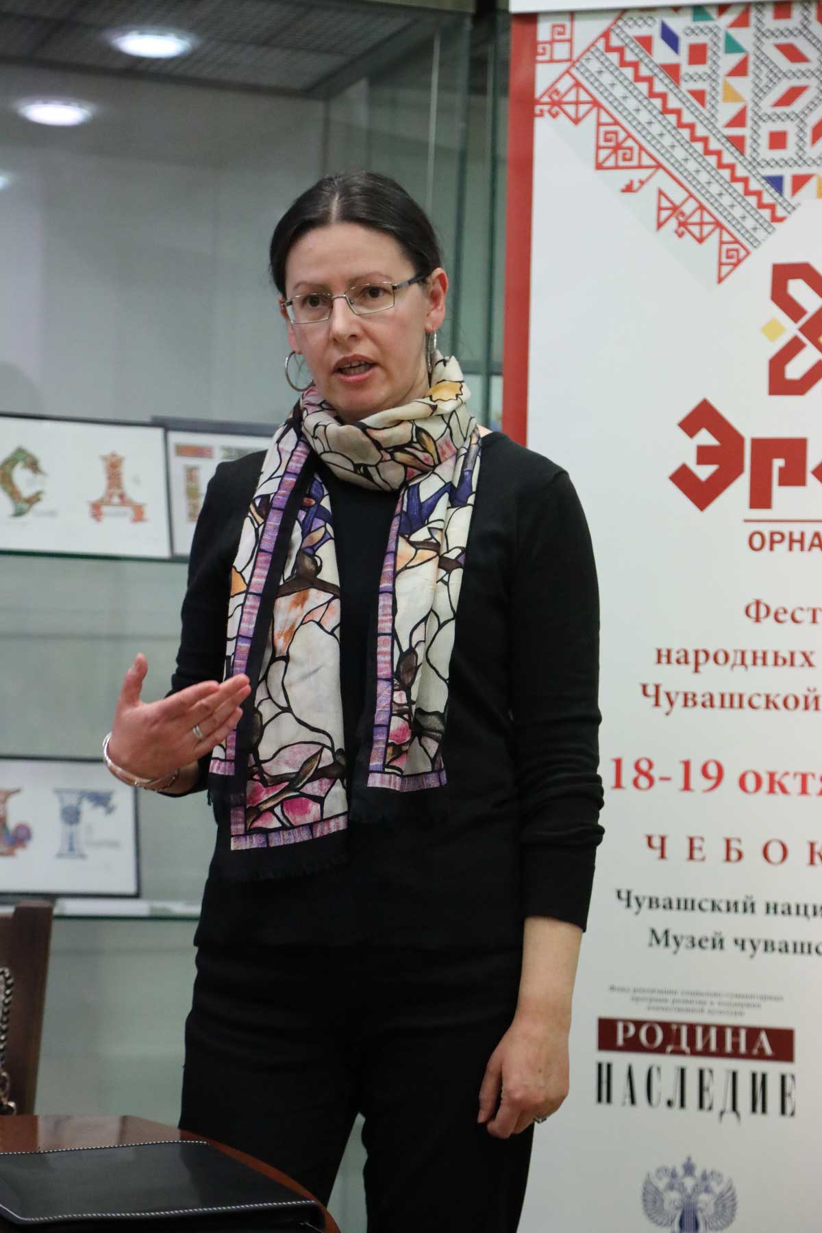 Выступление заведующей отделом тканей Всероссийского музея декоративно-прикладного и народного искусства Светланы Исраеловой было посвящено чувашской вышивке.