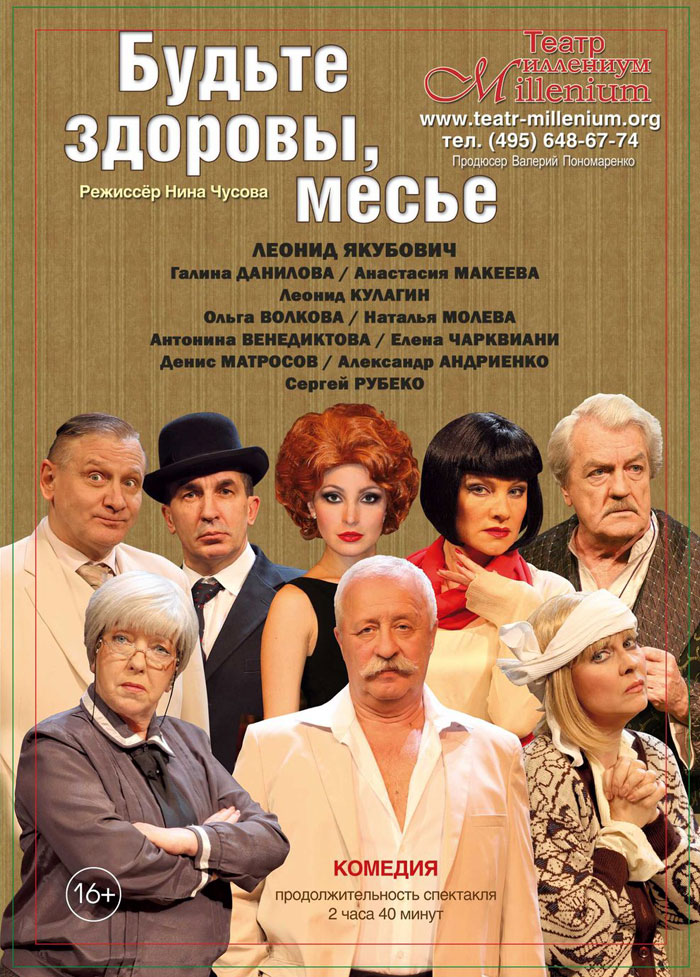 Это комедия нравов и характеров, где торжествуют деньги! Искрометный, легкий юмор и блистательная игра актеров по законам жанра еще раз дают нам возможность посмеяться над алчностью, глупостью и находчивостью этих восхитительных французов. Главную роль в постановке играет народный артист РФ Леонид Аркадьевич Якубович.