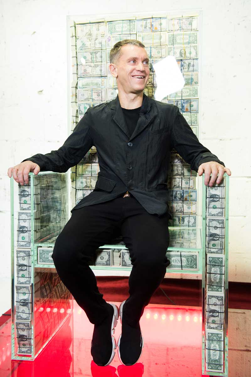 На стеклянном троне, наполненном миллионом долларов, можно посидеть в «Музее эмоций» на территории завода «Арма» в Москве.