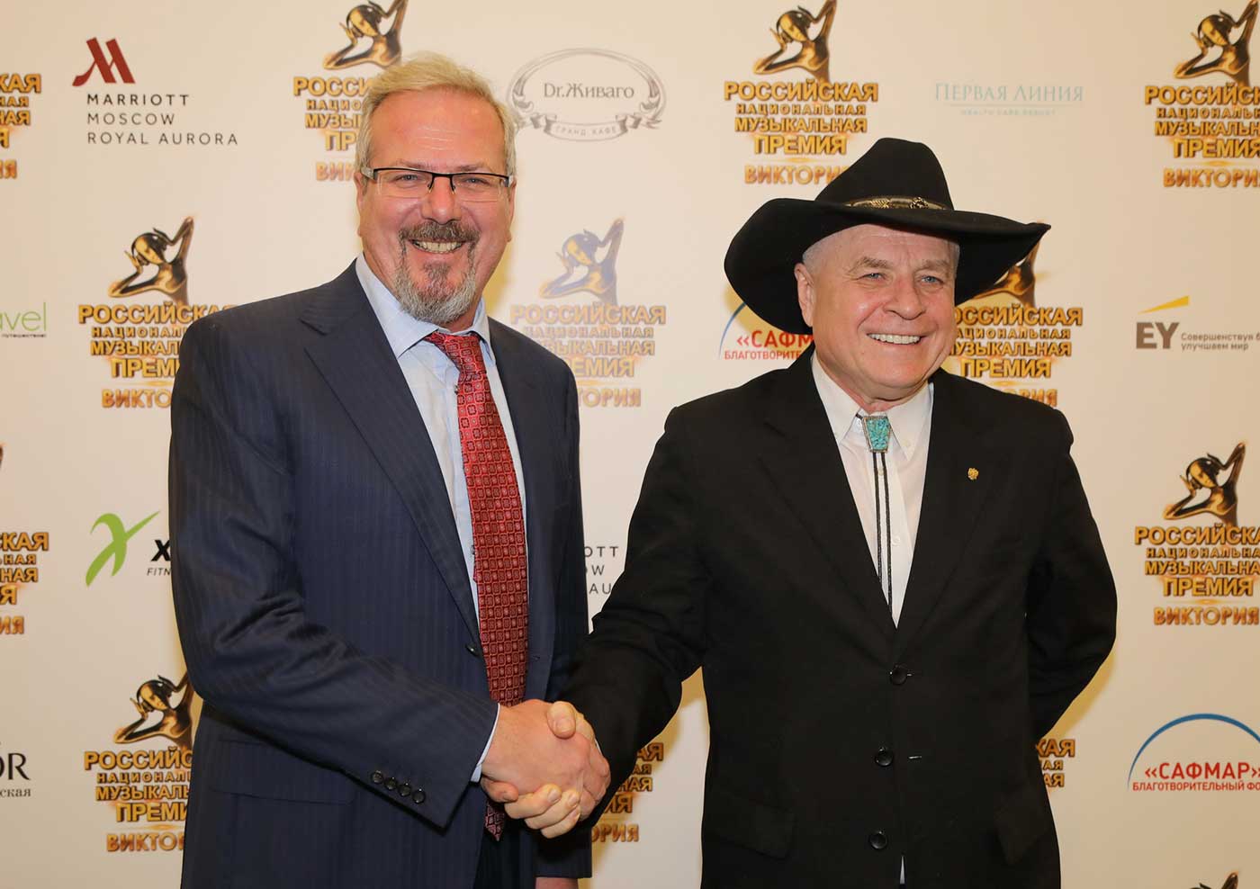 Награду им вручил президент Российской национальной музыкальной премии «Виктория» Юрий Костин: