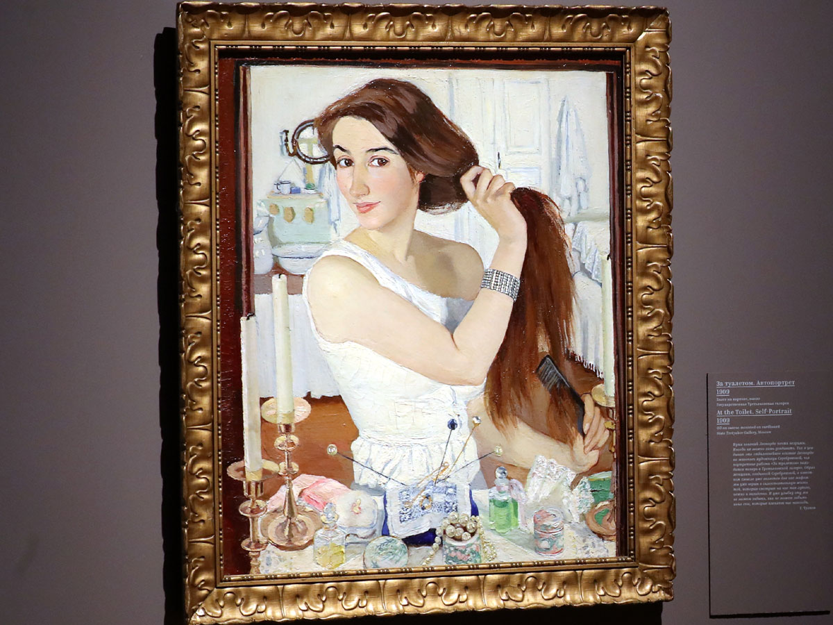 «За туалетом» Серебрякова написала в 1909 году. Автопортрет впервые был представлен публике на VII выставке Союза русских художников. Более 300 полотен, среди них уже признанные звезды - Николай Рерих, Лео Бакст, Александр Бенуа. И спокойная, почти классическая вещь, которая лучится. Полотно с выставки сразу приобрела Третьяковская галерея.