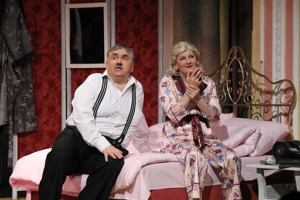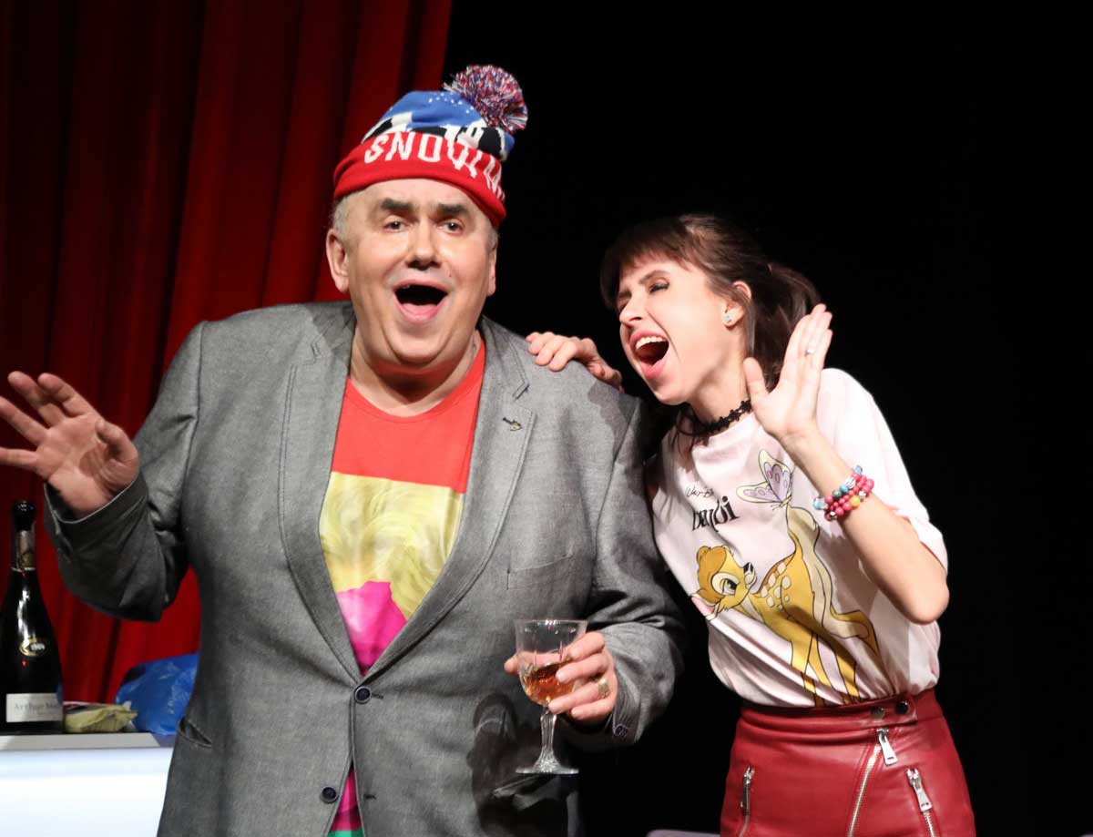 На премьере был аншлаг, билеты были раскуплены заранее, и в зале не было ни одного свободного места! Так как премьера выпала на рождественские праздники, неудивительно, что актеры после того, как закрылся занавес, уже в камерной обстановке поздравили друг друга со светлым праздником. А мы вручили Садальскому традиционный календарь «Экспресс газеты» на 2020 год — он посвящен великому празднику, предстоящему 75-летию Победы. От звезды «Папиных дочек» Мирославы Карпович Станислав Юрьевич тоже получил подарок, причем необычный.