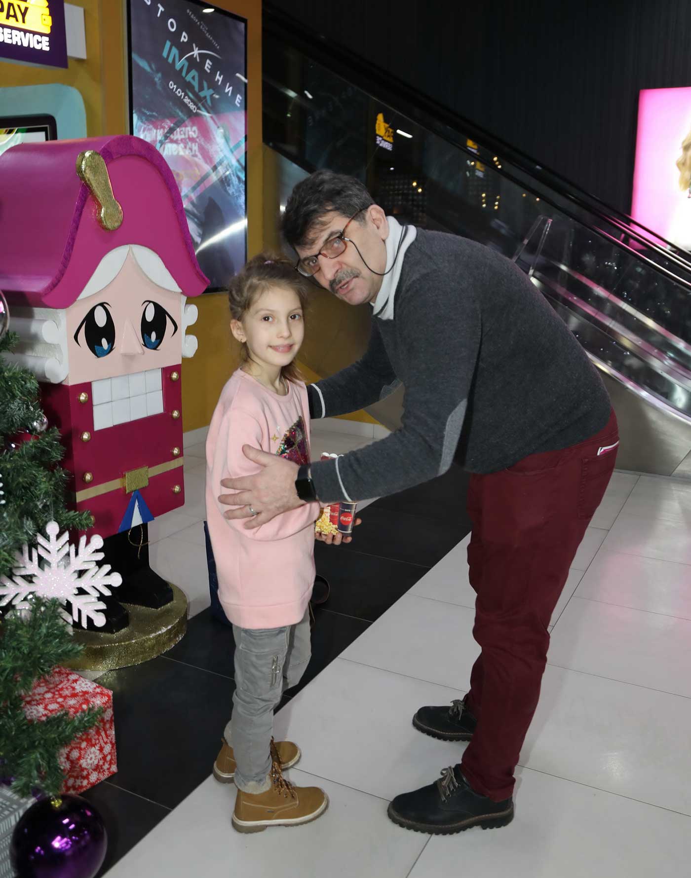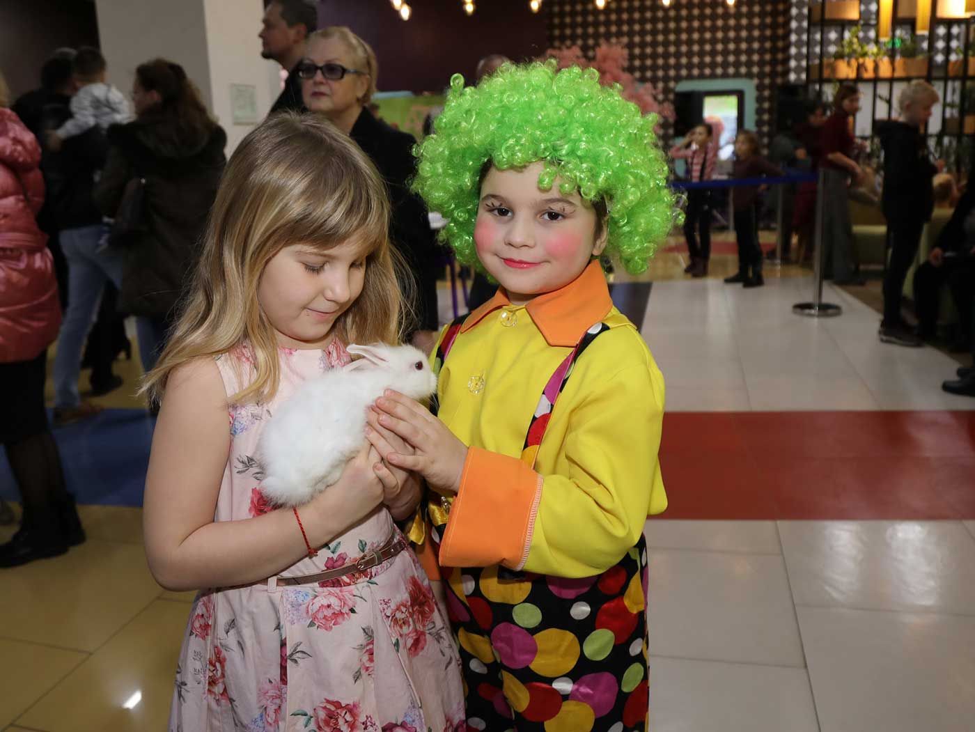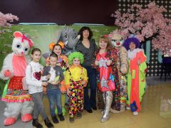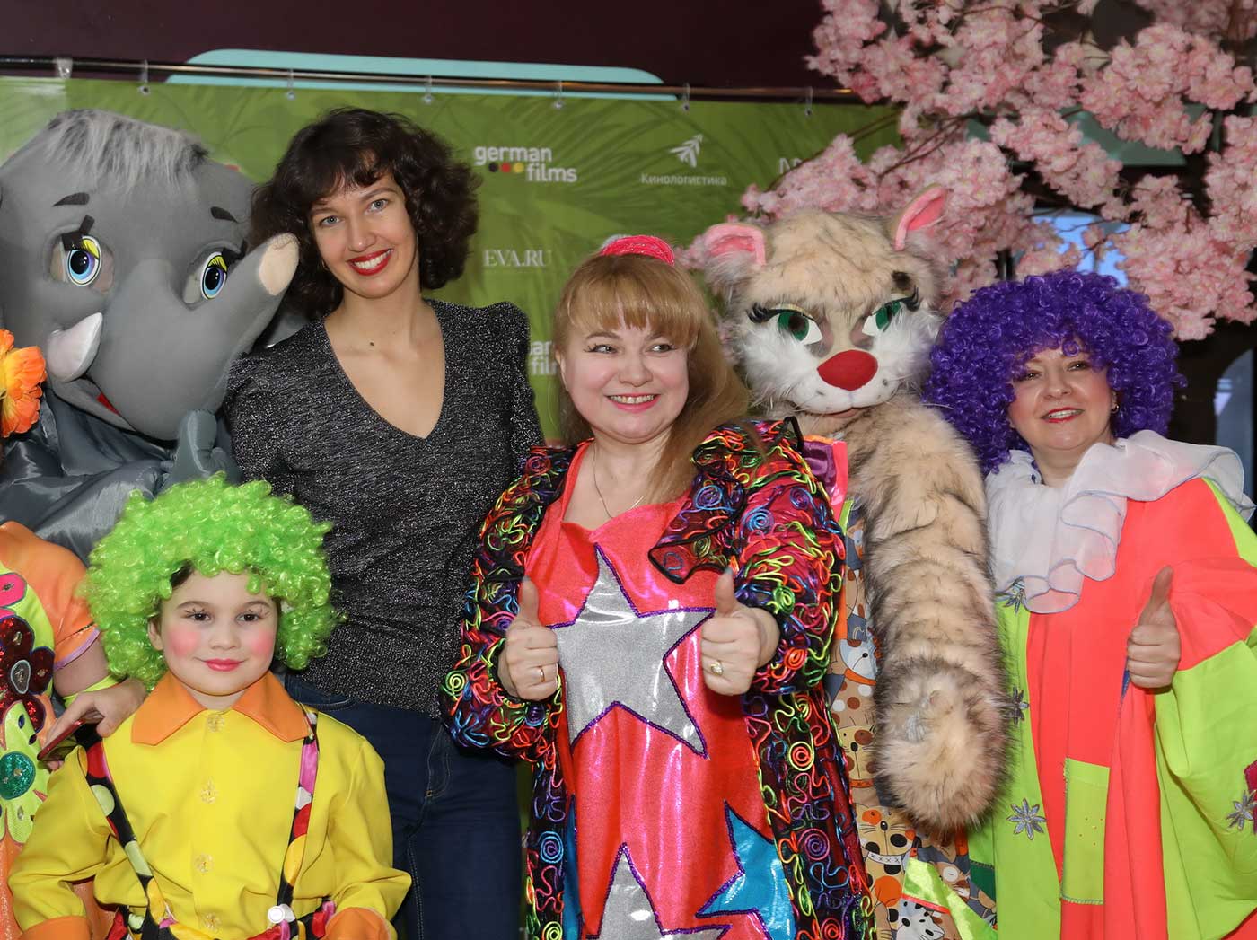 Перед началом просмотра в фойе гостей ожидала веселая развлекательная программа от шоу-группы «Мульти-пульти». А солистка группы «Витаминка» Наталья Тенькова подарила всем присутствующим радостное настроение песнями и танцами.Были и ростовые куклы в костюмах животных, кстати, а также и настоящие дрессированные зверьки - кролик, шиншилла и мини-пиг!
