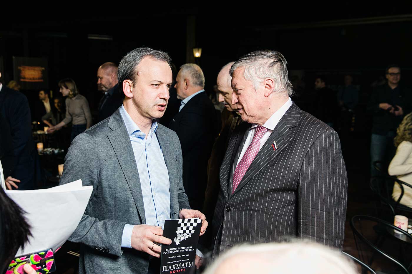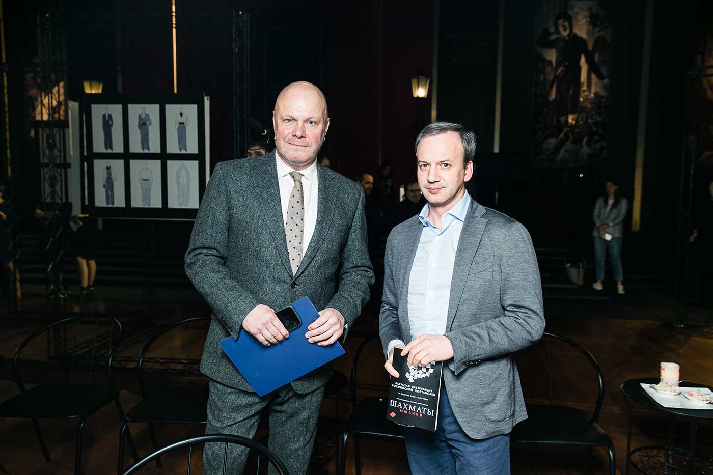 В числе почетных гостей презентации также были британский миллиардер советского происхождения, меценат, владелец компании Warner Music Леонард Блаватник и президент Международной шахматной федерации Аркадий Дворкович, который подтвердил всестороннюю поддержку FIDE российской постановке мюзикла «ШАХМАТЫ». Свою уверенность в том, что спектакль будет пользоваться успехом у публики, выразил Михаил Минин, генеральный директор компании МТС Энтертейнмент, которая выступила сопродюсером российской постановки.