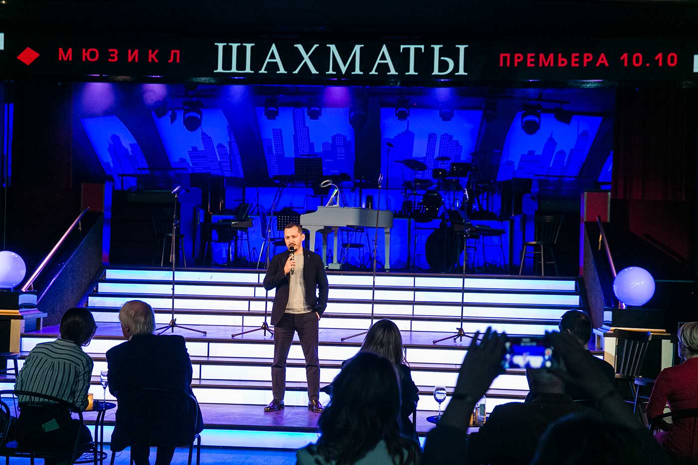 Специально на презентацию постановки в Москву прибыл автор идеи и либретто мюзикла британский поэт и драматург Тим Райс. Также гостями вечера стали народная артистка СССР Алла Пугачева, которую композиторы мюзикла Бенни Андерссон и Бьорн Ульвеус из группы ABBA хотели видеть в роли Светланы – жены главного героя мюзикла и многократный чемпион мира по шахматам Анатолий Карпов, чей матч с Виктором Корчным в итальянском Мерано в 1981 году послужил для Тима Райса основой действия первого акта спектакля.