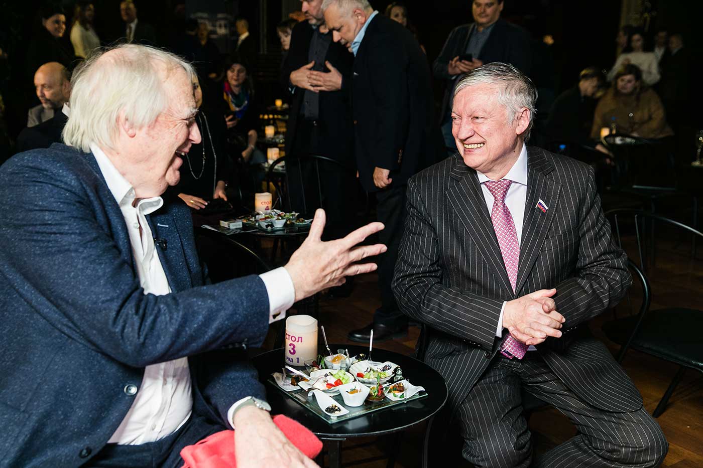 И Пугачева, и Райс, и Карпов встретились, как старые друзья: советский шахматист и британский драматург подружились сразу после исторического матча в Италии, а за звездой N1 в CCCP Райс приезжал лично в 1983 году – вместе с Андерссоном и Ульвеусом, которые рассчитывали, что Пугачева сыграет Светлану в первой постановке «ШАХМАТ» в Лондоне: