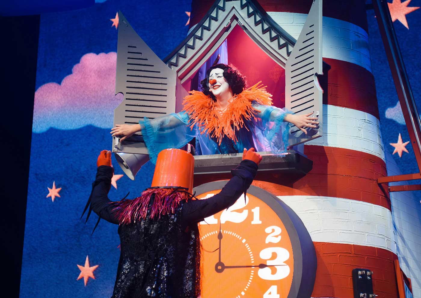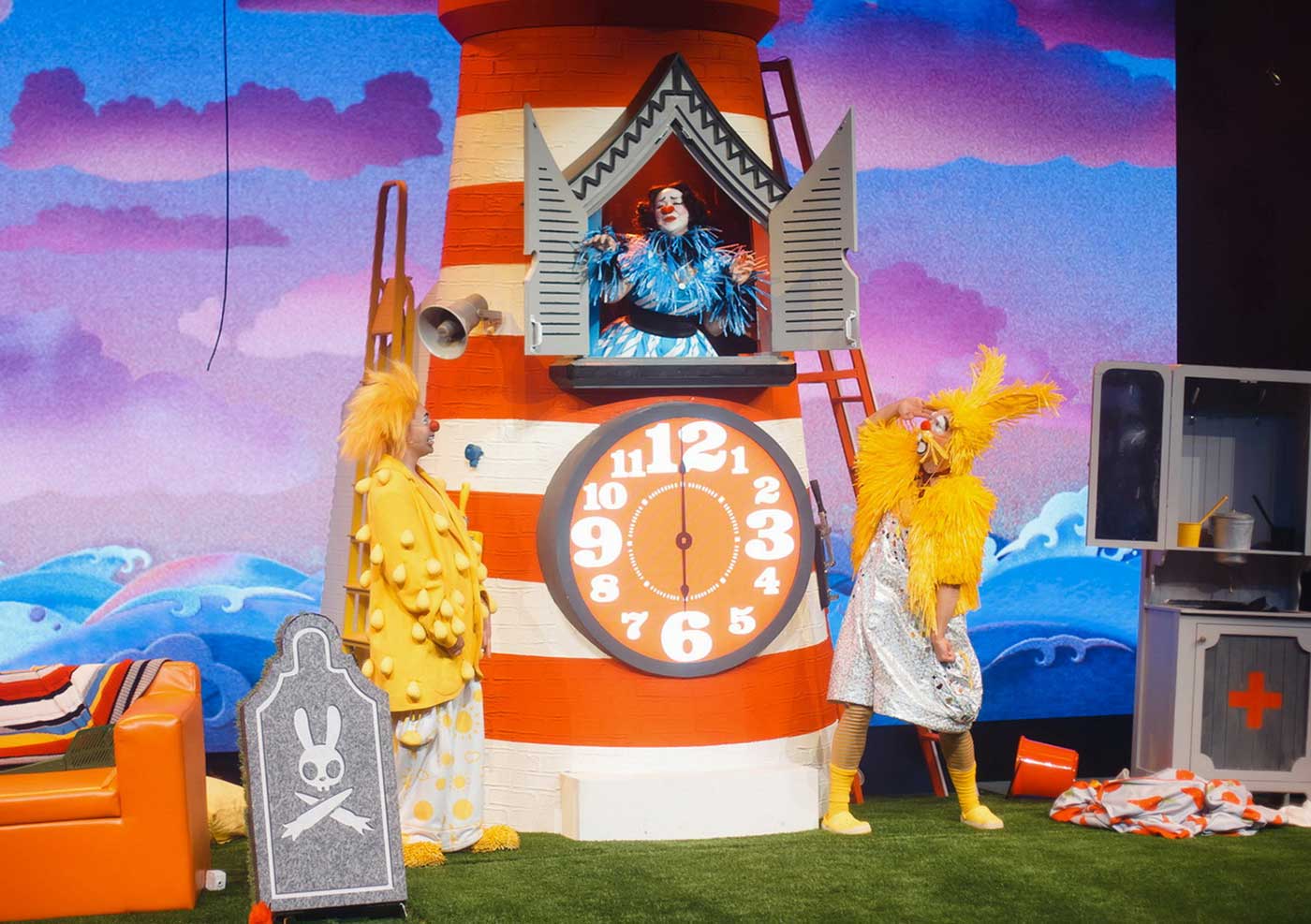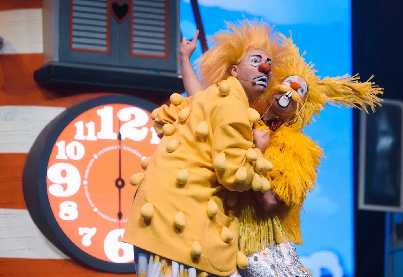 Безумные костюмы, сумасшедшие танцы, фантастические декорации, световые инсталляции, шары, падающие прямо с неба, и, конечно, громкий и беззаботный смех! За три дня более 3000 зрителей попали в другую реальность, где за смену дня и ночи отвечают два клоуна, а слово «взрослый» теряет всякий смысл. Команде «Жёлтого и Чёрного» удалось не только возродить уже немного забытый жанр клоунады, но и рассказать интересную, захватывающую историю, которая понравилась не только детям, но и их родителям.