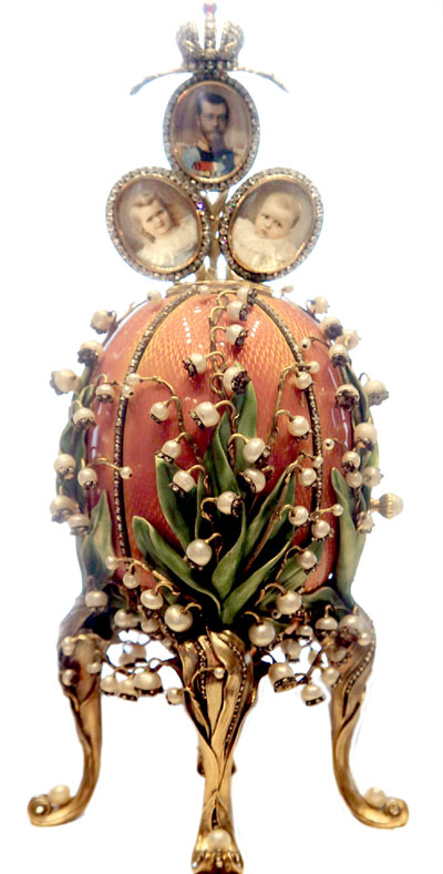 3. «Ландыши» (1898 г.) сделаны из золота, эмали, алмазов, рубинов, горного хрусталя и слоновой кости. Каждый бутон - жемчужина. Внутри прятались медальоны с портретами Николая II и его дочерей великих княгинь Ольги и Татьяны.