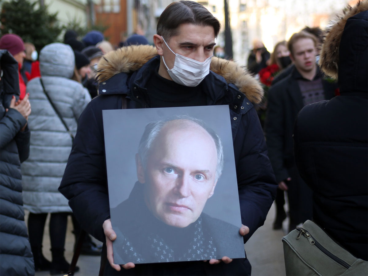 Траурную церемонию вел ректор Школы-студии МХАТ, заслуженный артист Игорь Золотовицкий.