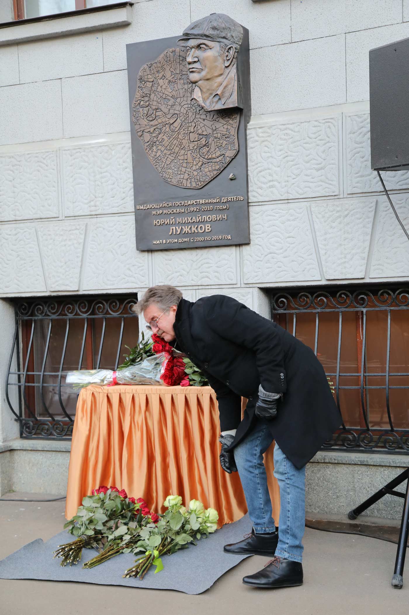 В самом центре столицы, на фасаде дома на 3-й Тверской-Ямской улице, где жил до самой своей смерти экс-мэр Москвы Юрий Лужков, сегодня открыли мемориальную доску в его честь.