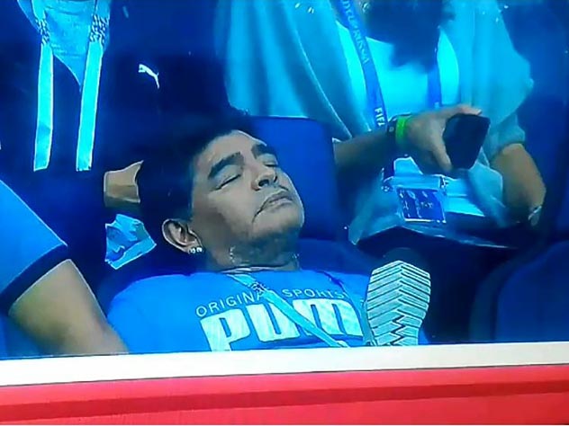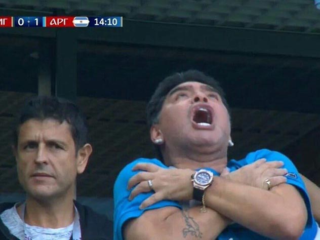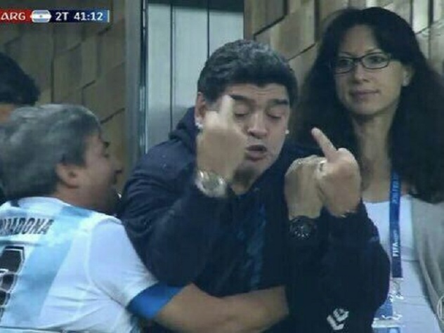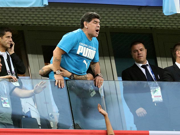 Бывшему нападающему сборной Аргентины Диего Марадоне нелегко пришлось во время матча его команды с нигерийцами