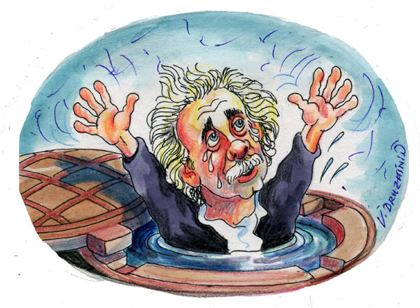 О рассеянности Эйнштейна ходили легенды. Однажды он провалился в канализационный люк - висел на подножке и плакал от страха, пока его не вытащили. Вместе с тем, не боялся бури: в чудовищный шторм единственный из пассажиров разгуливал по палубе корабля, когда плыл в Америку.