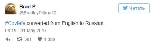 Западные СМИ предположили, что загадочное слово имеет русское происхождение, и начали гадать, какой «знак русским» подал американский лидер. Блогеры с иронией отнеслись к ситуации, и в шутку предположили, что слово Covfefe в Google Переводчике на русском языке означает «Я ухожу в отставку».