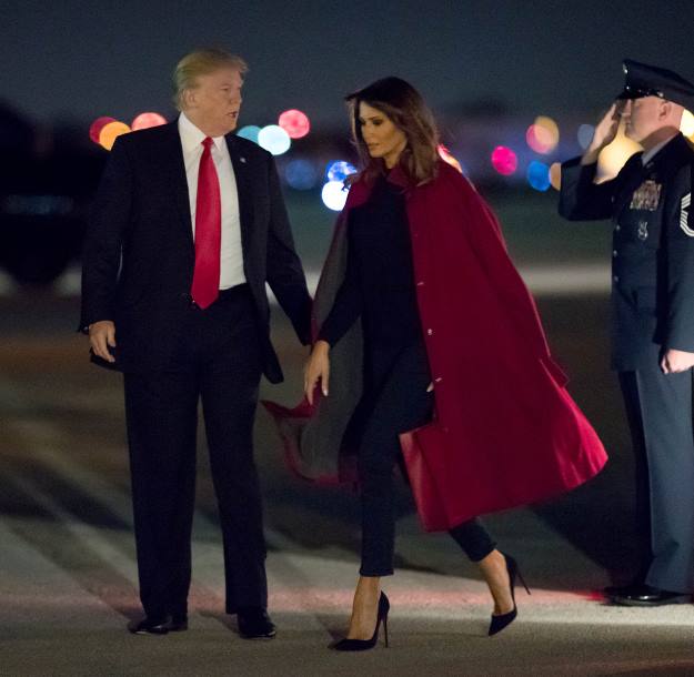 Мелания Трамп в малиновом плаще переняла стиль мужа