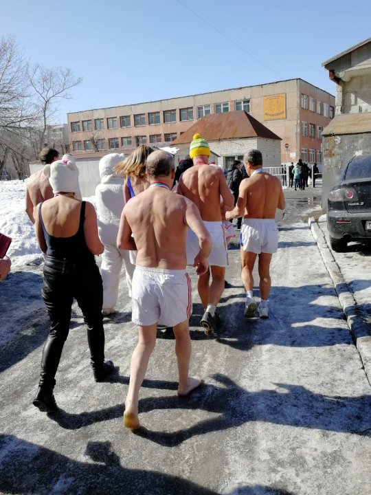 Алтайские «моржи» по морозу пришли на выборы в купальниках и плавках