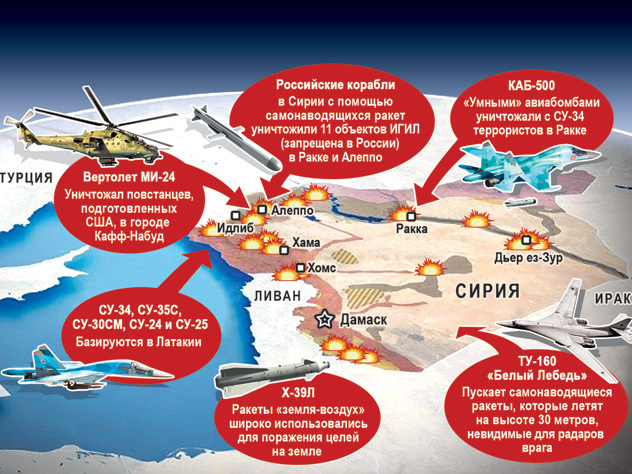 Разумеется, в той же Сирии повсеместно применяется российское высокоточное оружие. Вспомним ошеломивший весь мир залп крылатыми ракетами из акватории Каспийского моря по объектам ИГИЛ (запрещенной в России организации). Наши боевые корабли отправили 26 смертоносных посылок аж на 1500 километров, и все они достигли цели. Западные СМИ в бессильной злобе пытались «укусить»: «Это все равно что стрелять по воробьям из пушки!»