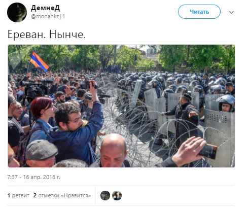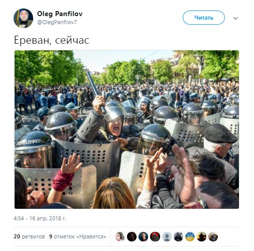«Кстати, сейчас «майданутые» поедут в Ереван типа помощь оказывать. Запомните этот твит», - заметил .