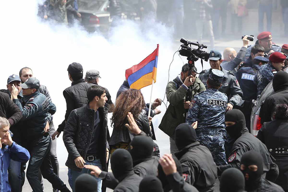 Ранее сообщалось, что на площади Революции были слышны выстрелы, силовики пустили в ход дымовые шашки и дымовые гранаты. Проход протестующих на улице Арцах перекрыт. Применив спецсредства, полиция увела Никола Пашиняна.